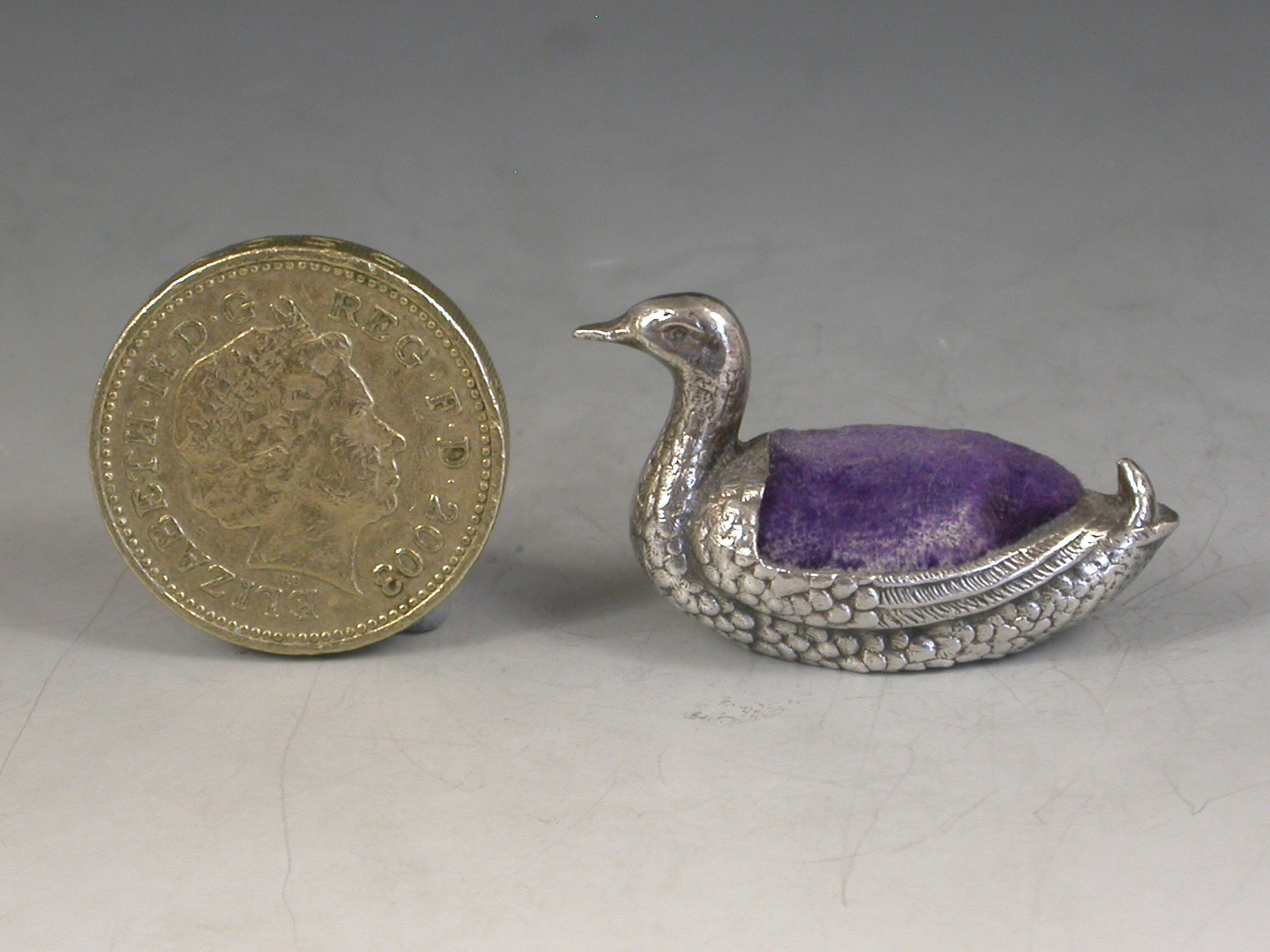 Edwardian Novelty Silver Duck Pin Cushion - Small Size