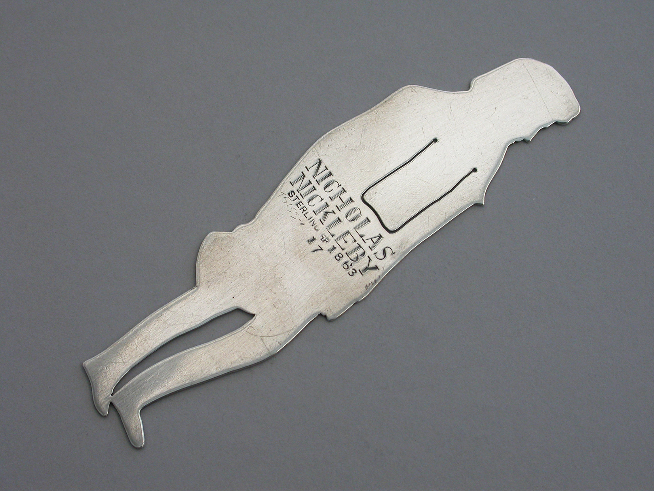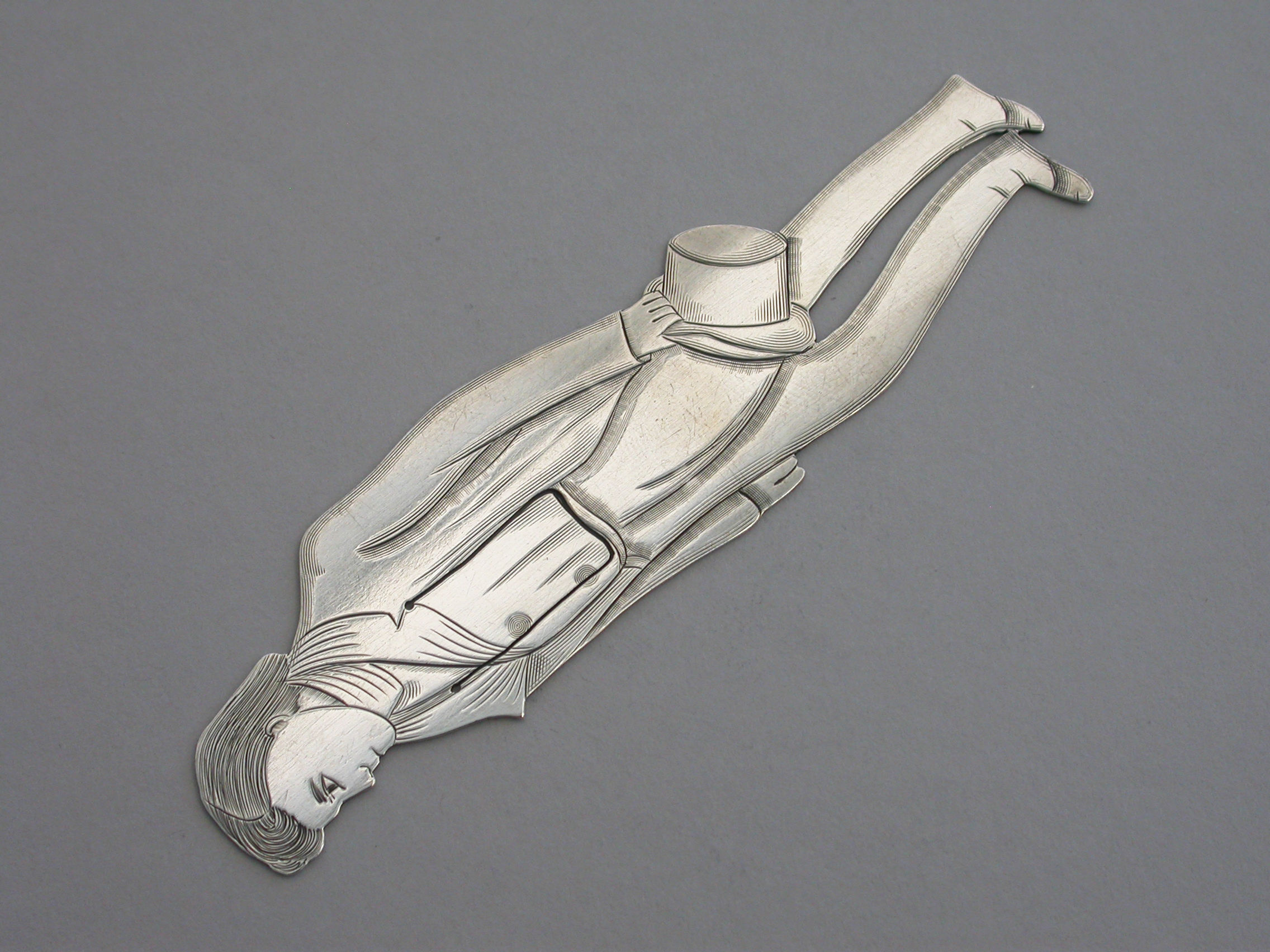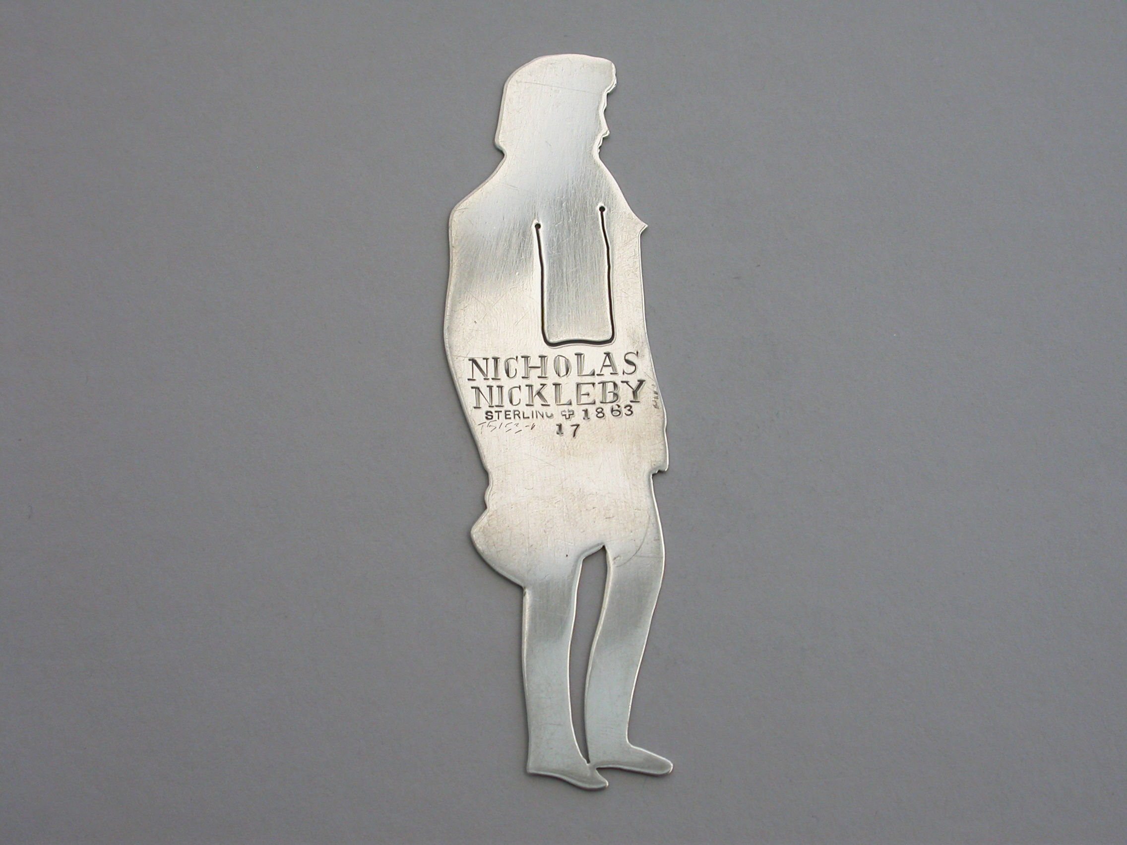A rare early 20th century American novelty silver figural Bookmark, depicting the character Nicholas Nickleby from the Charles Dickens novel of the same name.