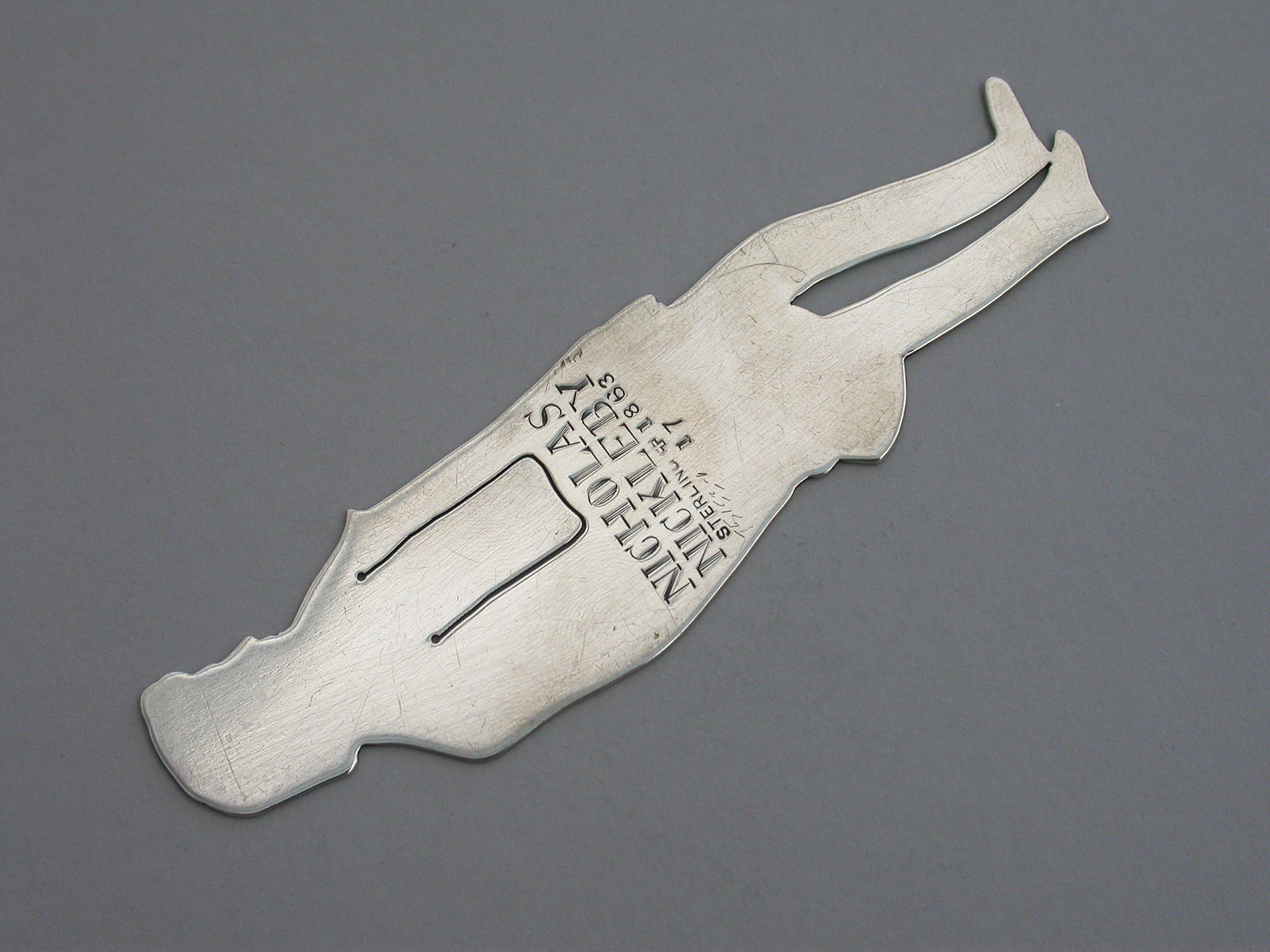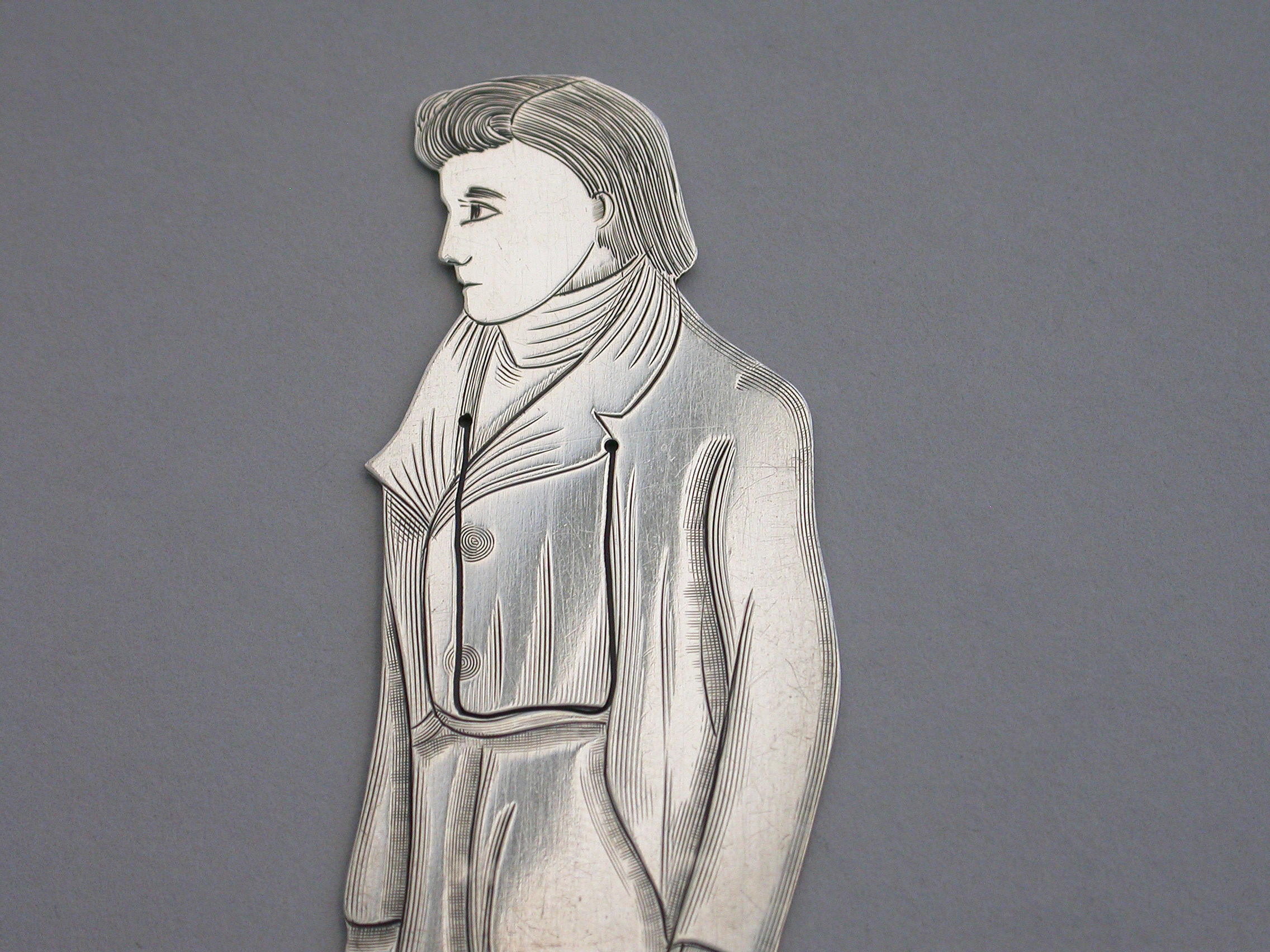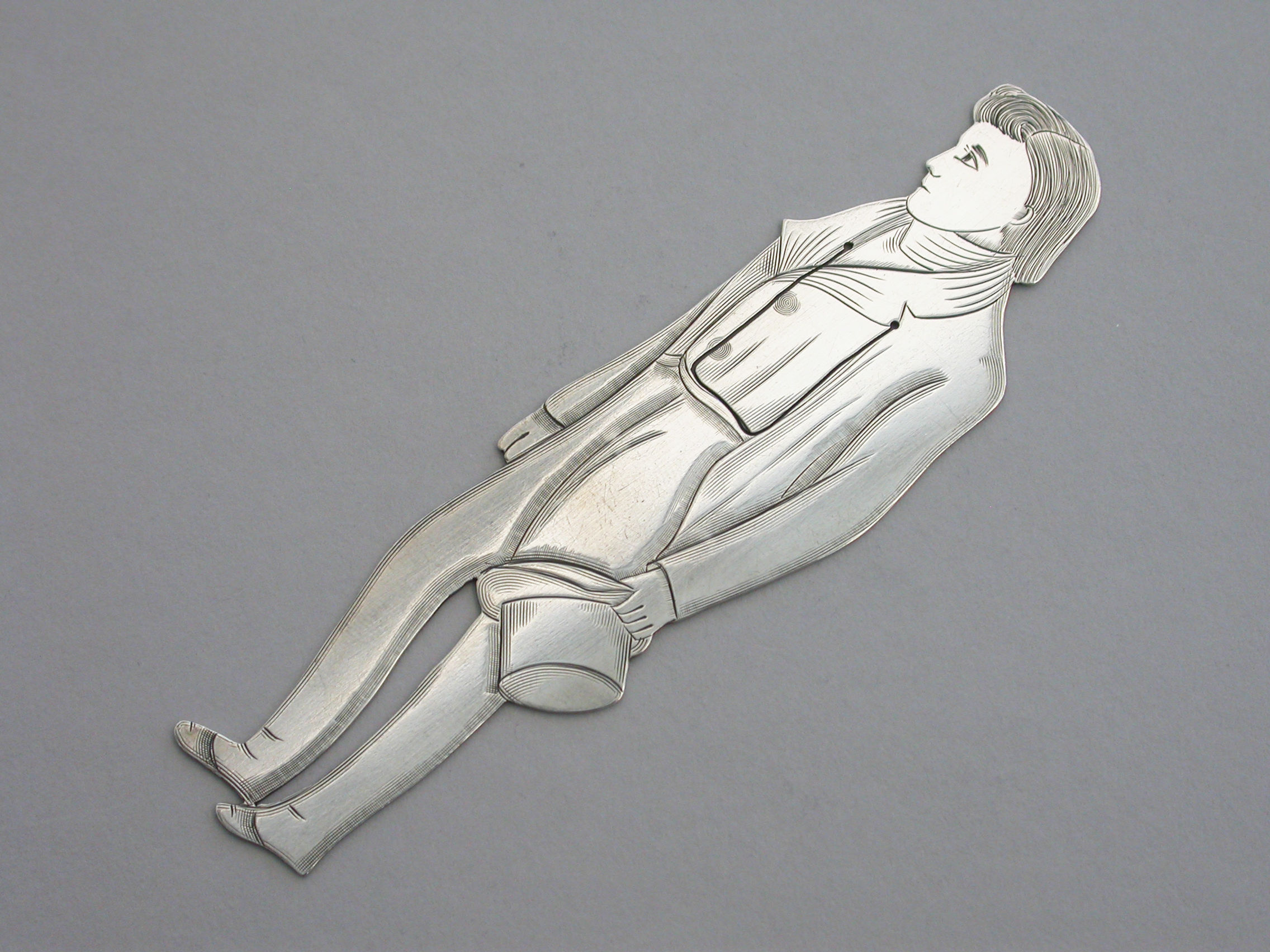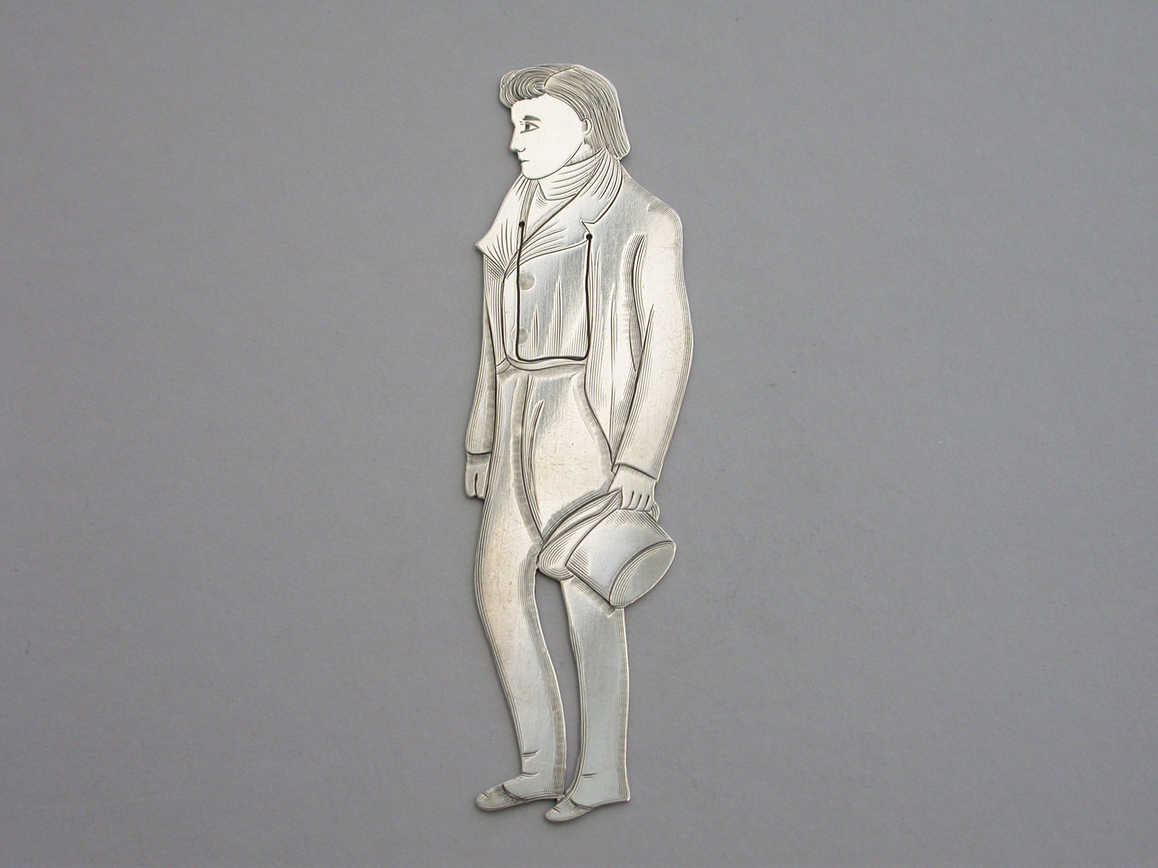 A rare early 20th century American novelty silver figural Bookmark, depicting the character Nicholas Nickleby from the Charles Dickens novel of the same name.