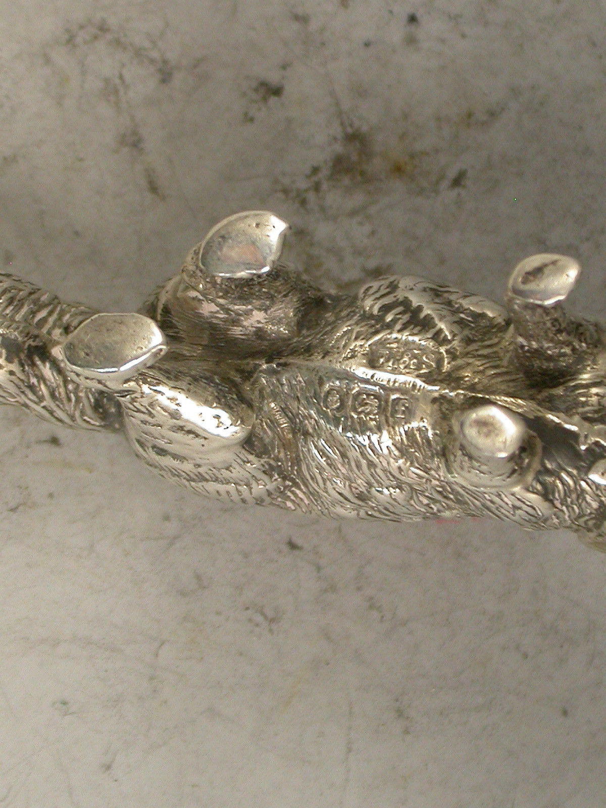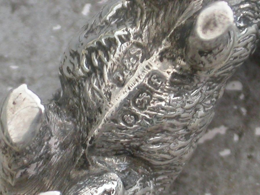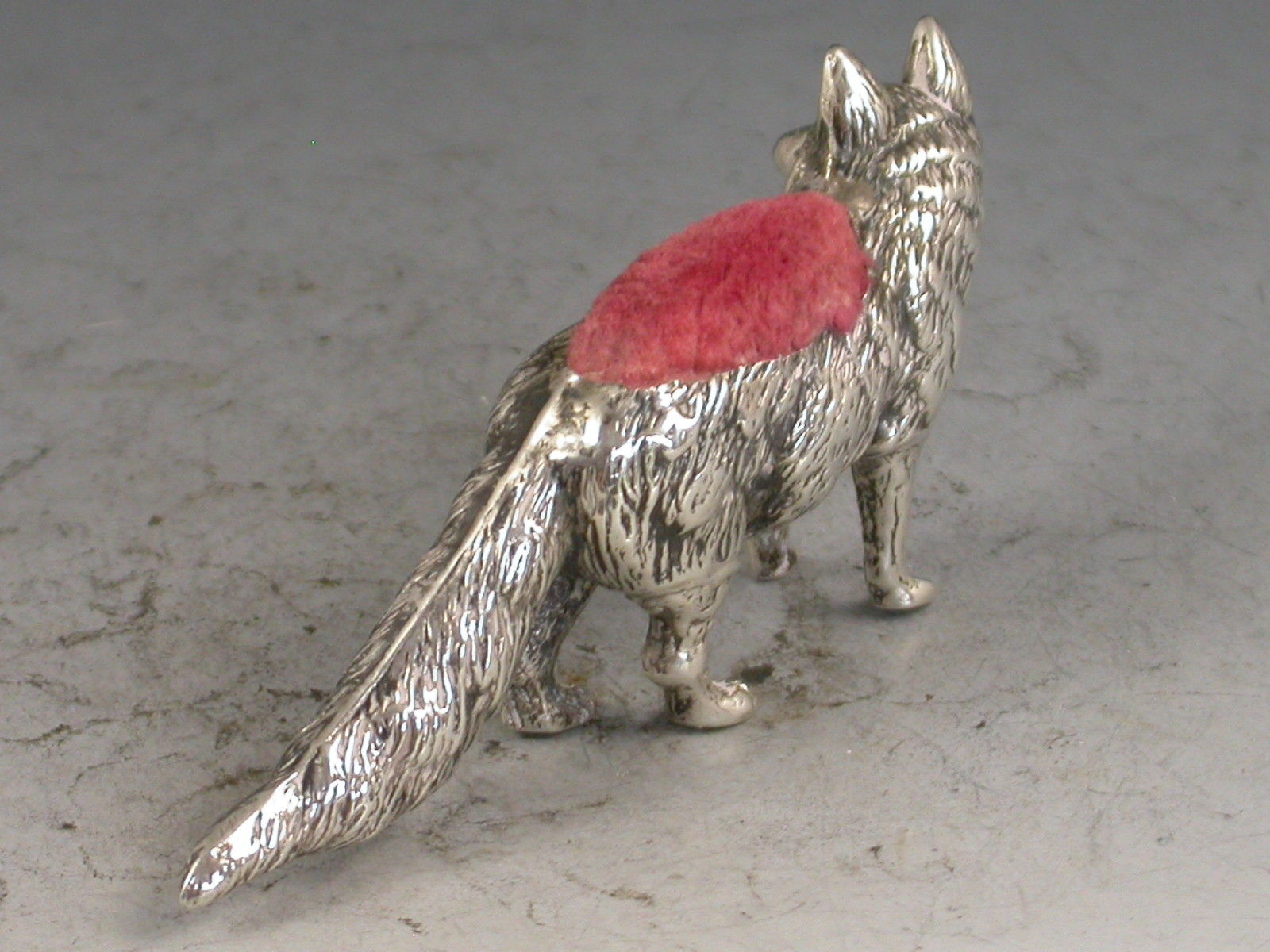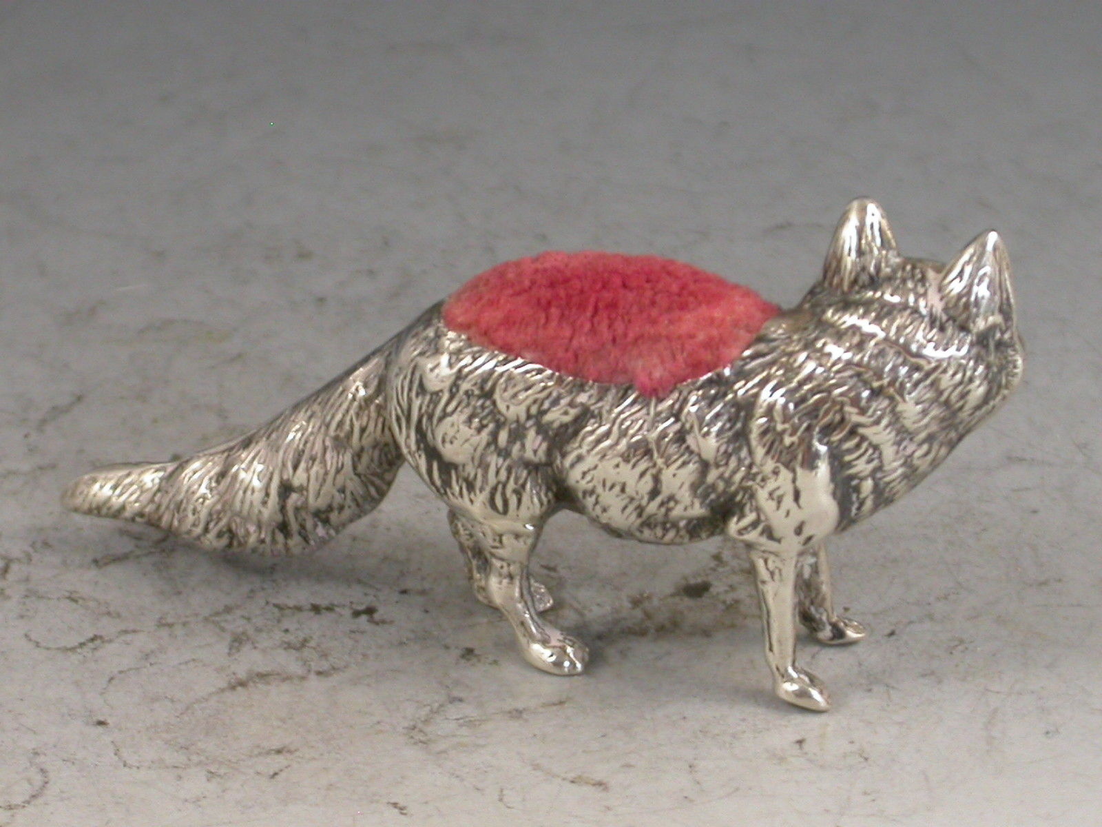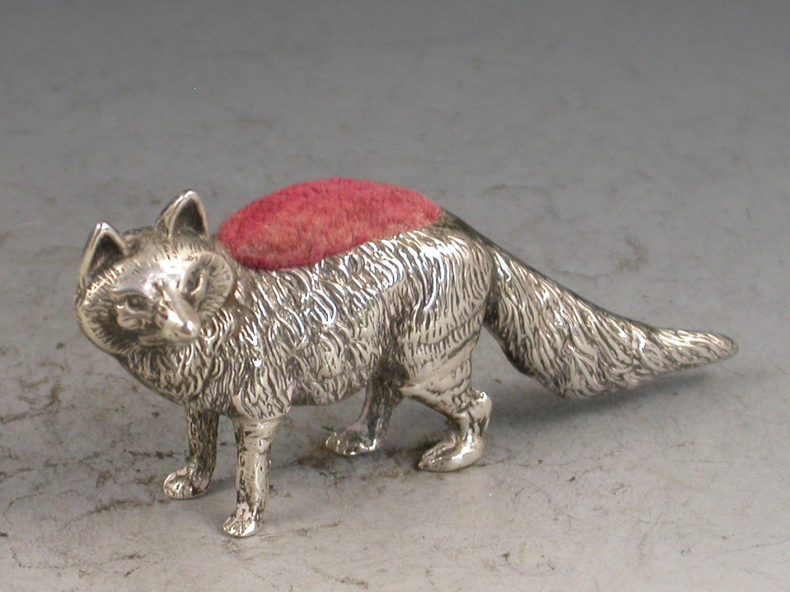 A rare Edwardian novelty silver Pin Cushion made in the form of a Fox, with pink velvet cushion.