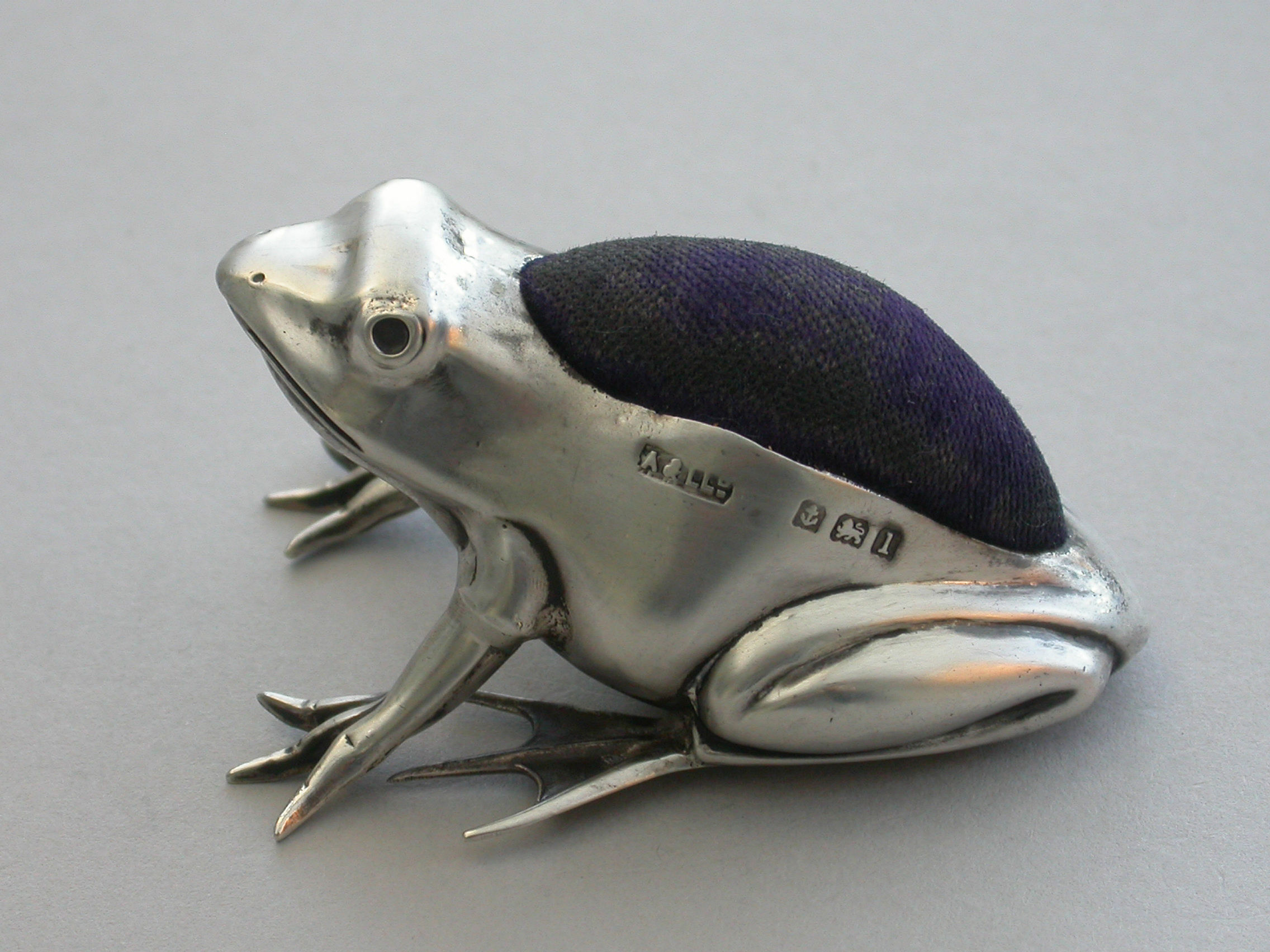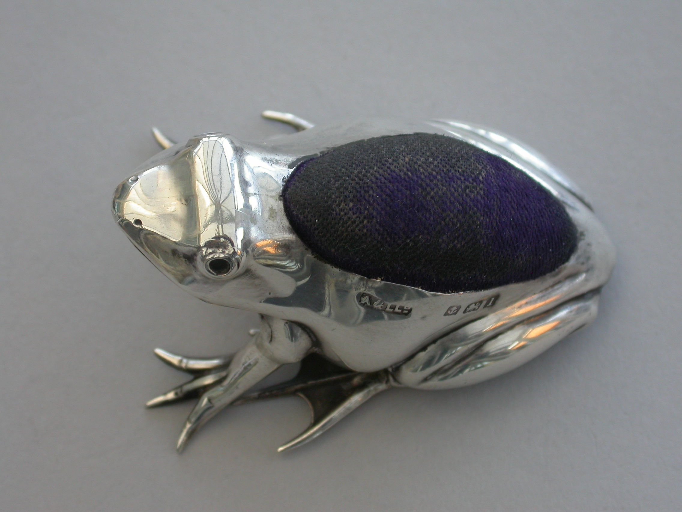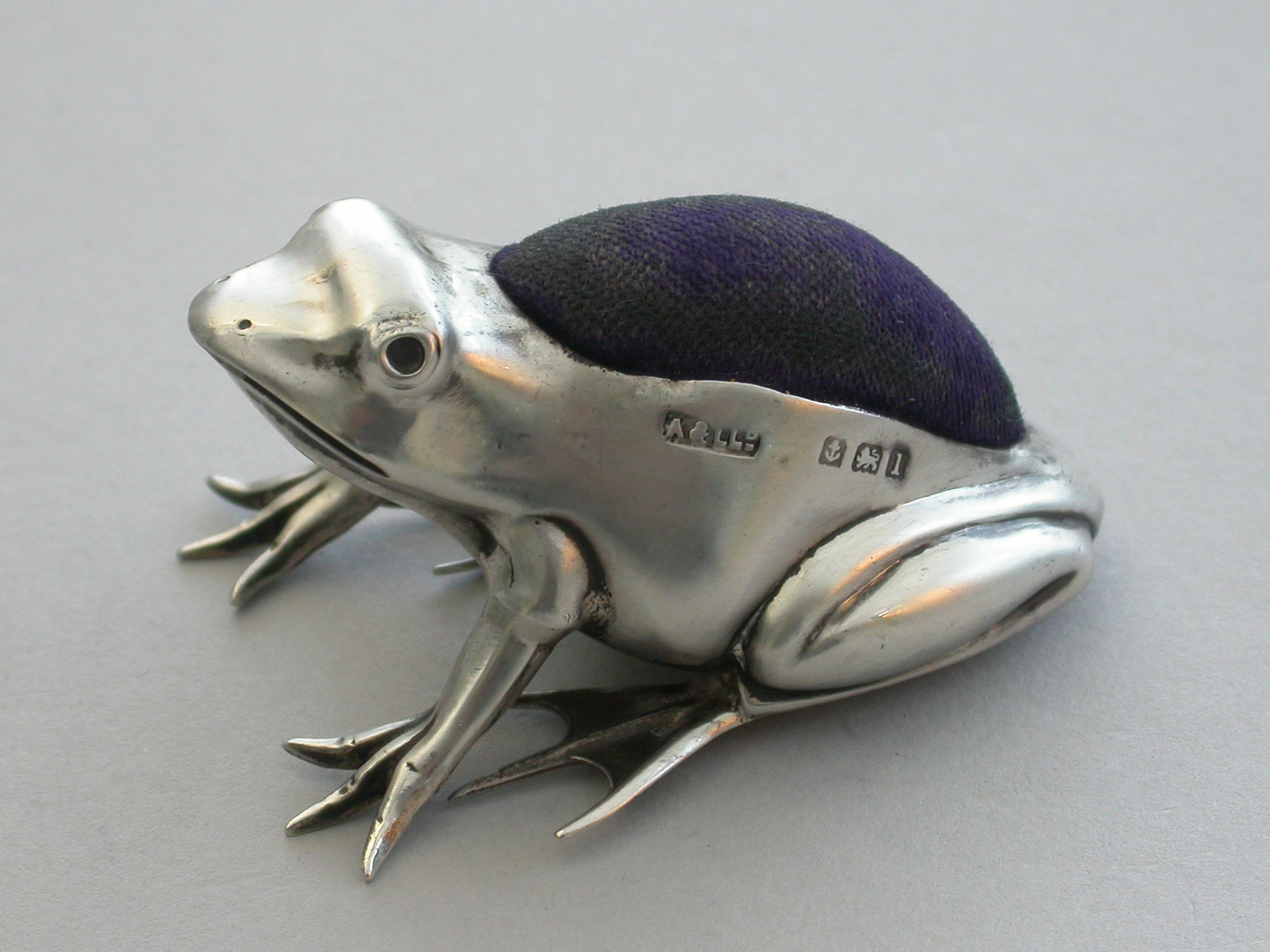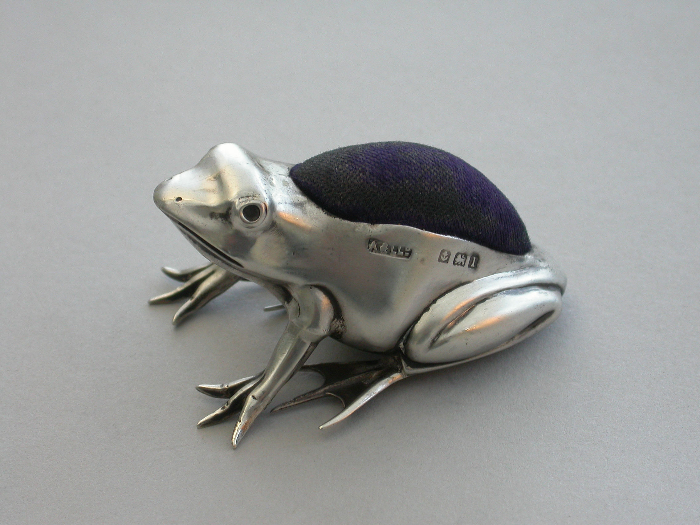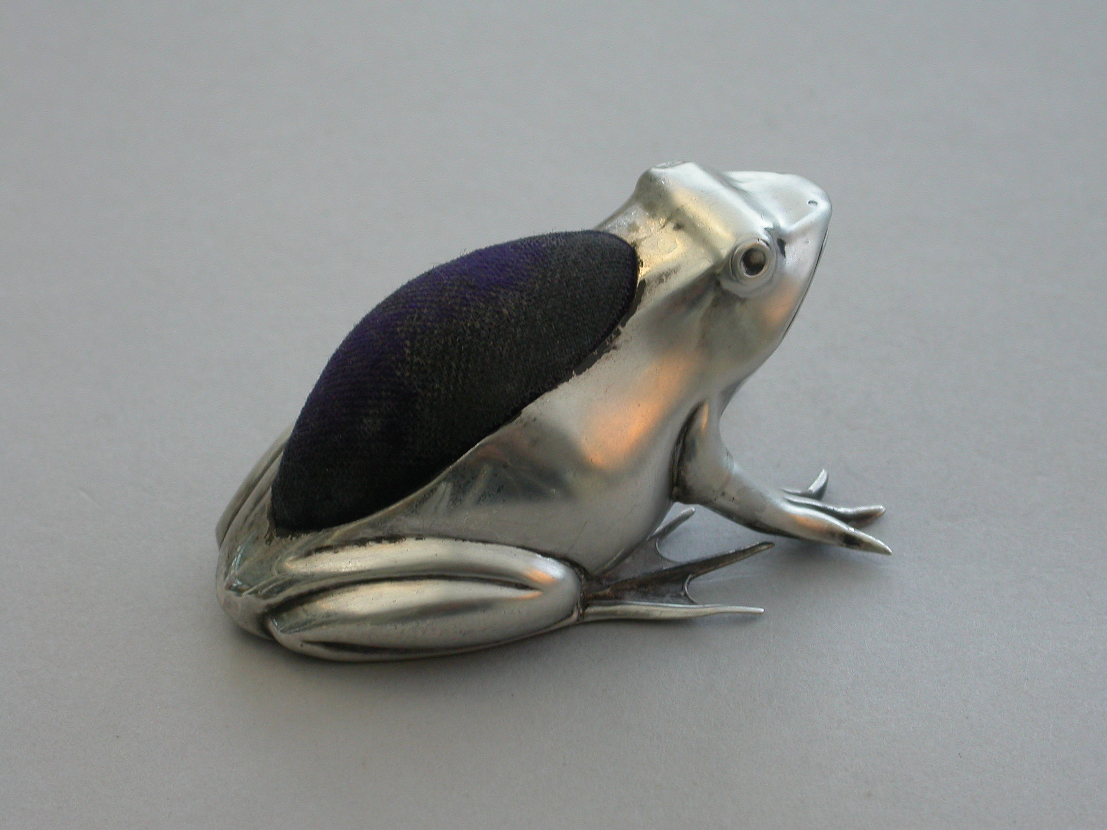 A good Edwardian novelty silver Pin Cushion made in the form of a crouching frog.