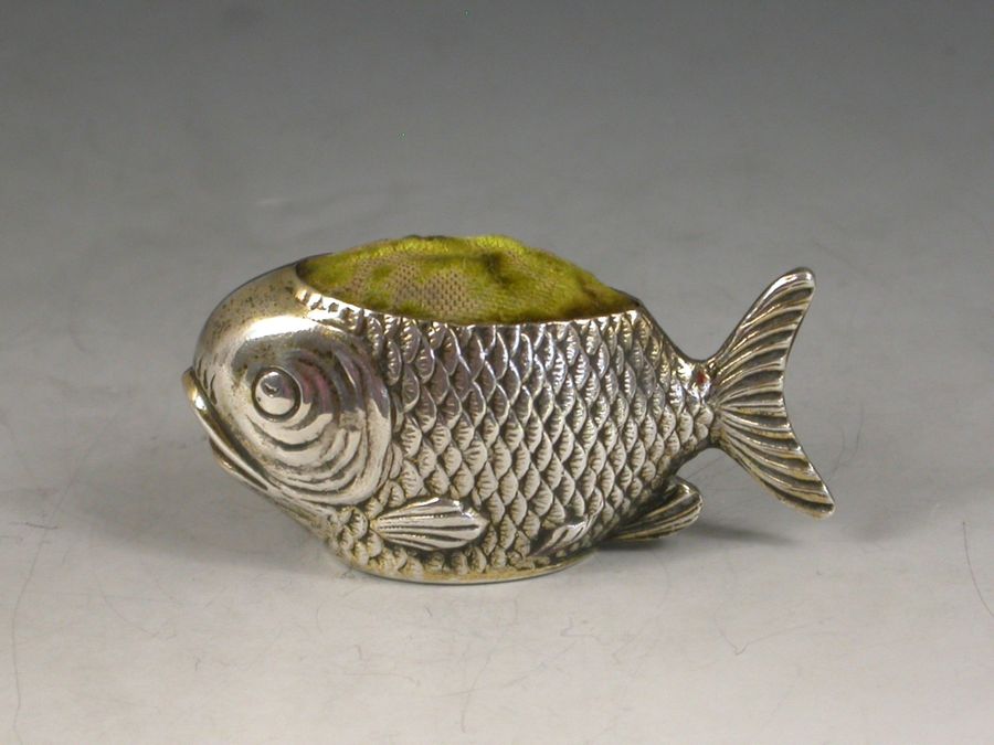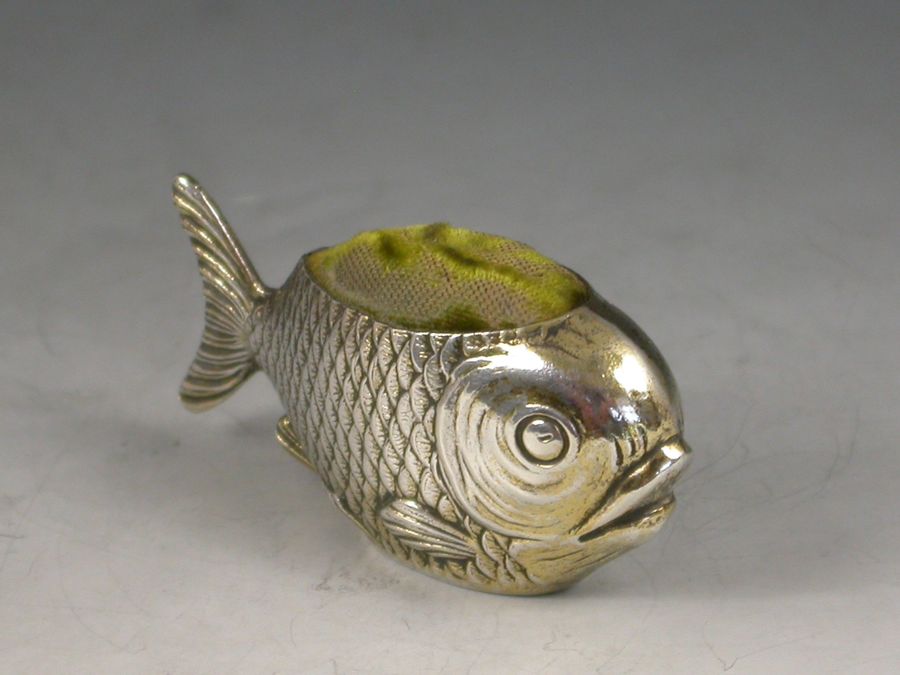 Edwardian Novelty Silver Gilt Fish Pin Cushion - Medium Size