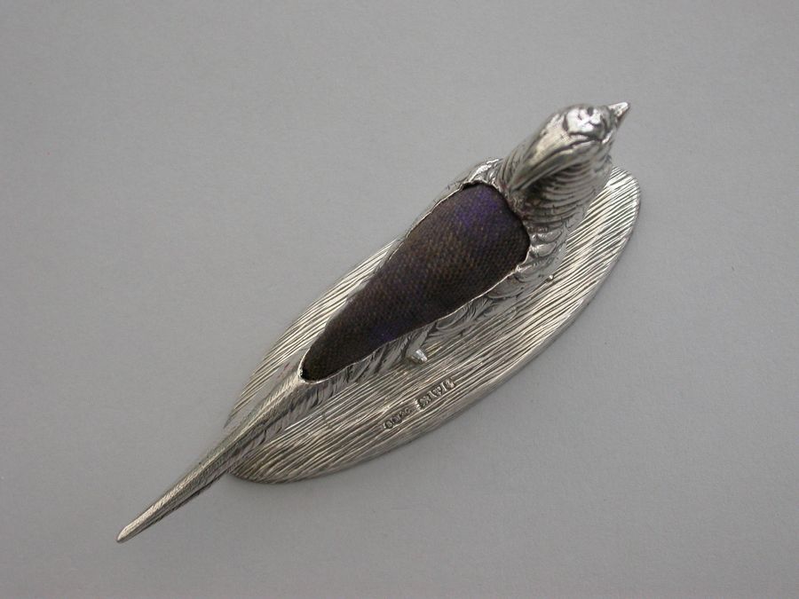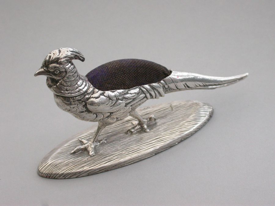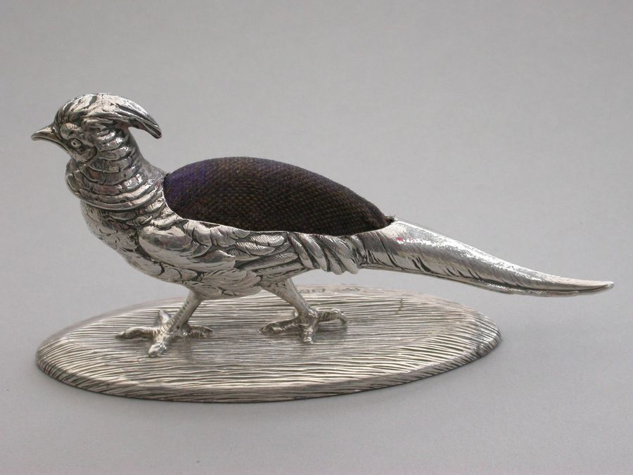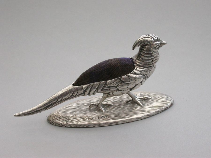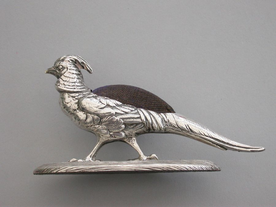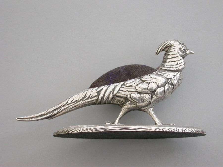Edwardian Novelty Silver 'Golden Pheasant' Pin Cushion