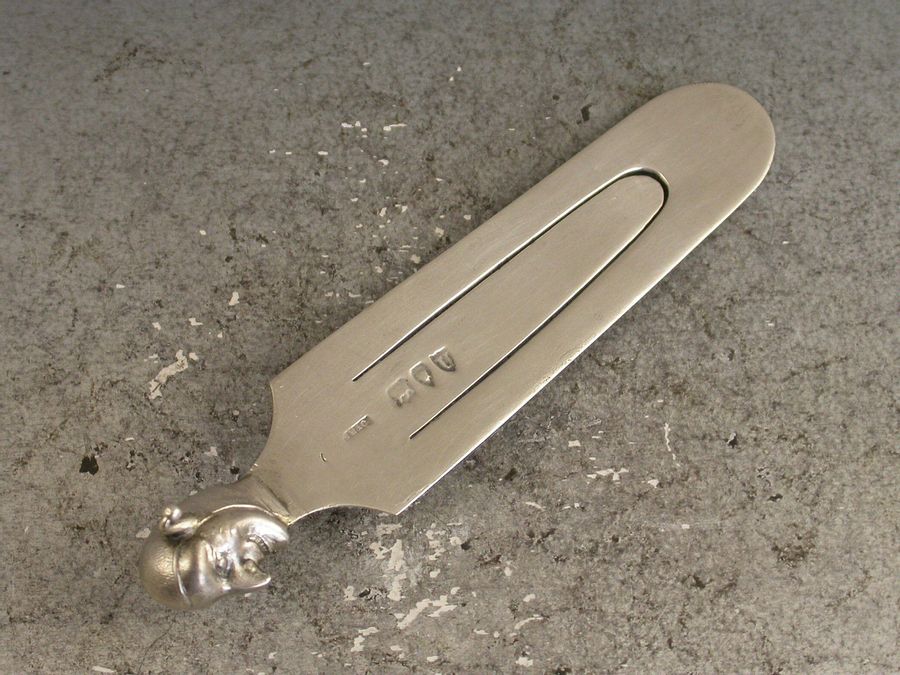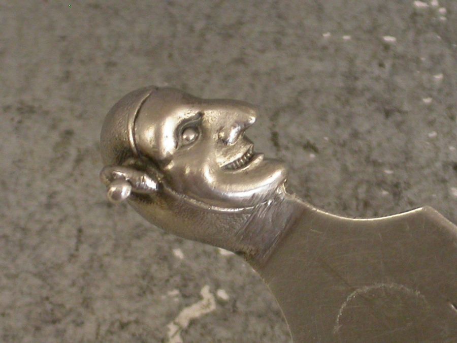 A rare Edwardian novelty silver Bookmark, the terminal formed as the head of a Jesters head.