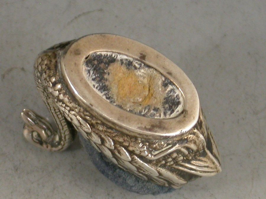 A good Edwardian novelty silver Pin cushion made in the form of a Swan and of a small size.