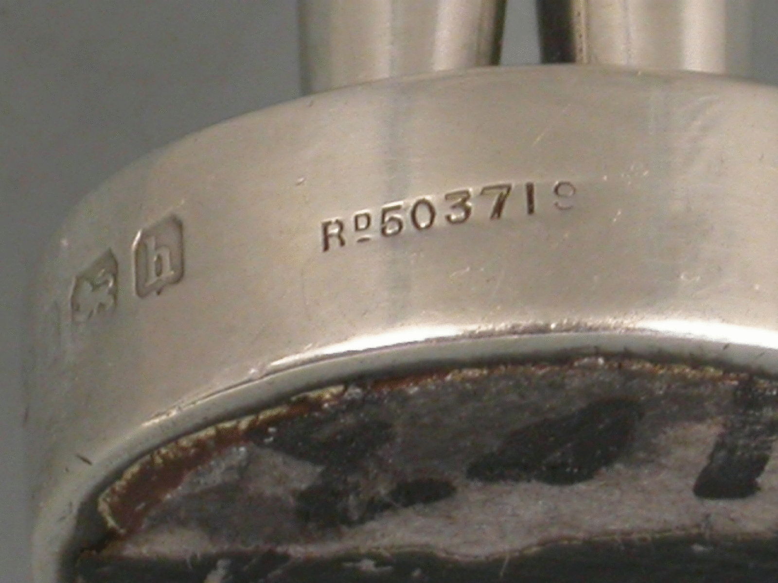 By ? L B, Birmingham, 1907. Also stamped with registered design number to the base.