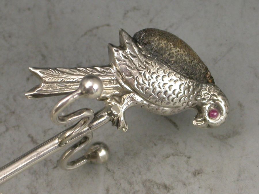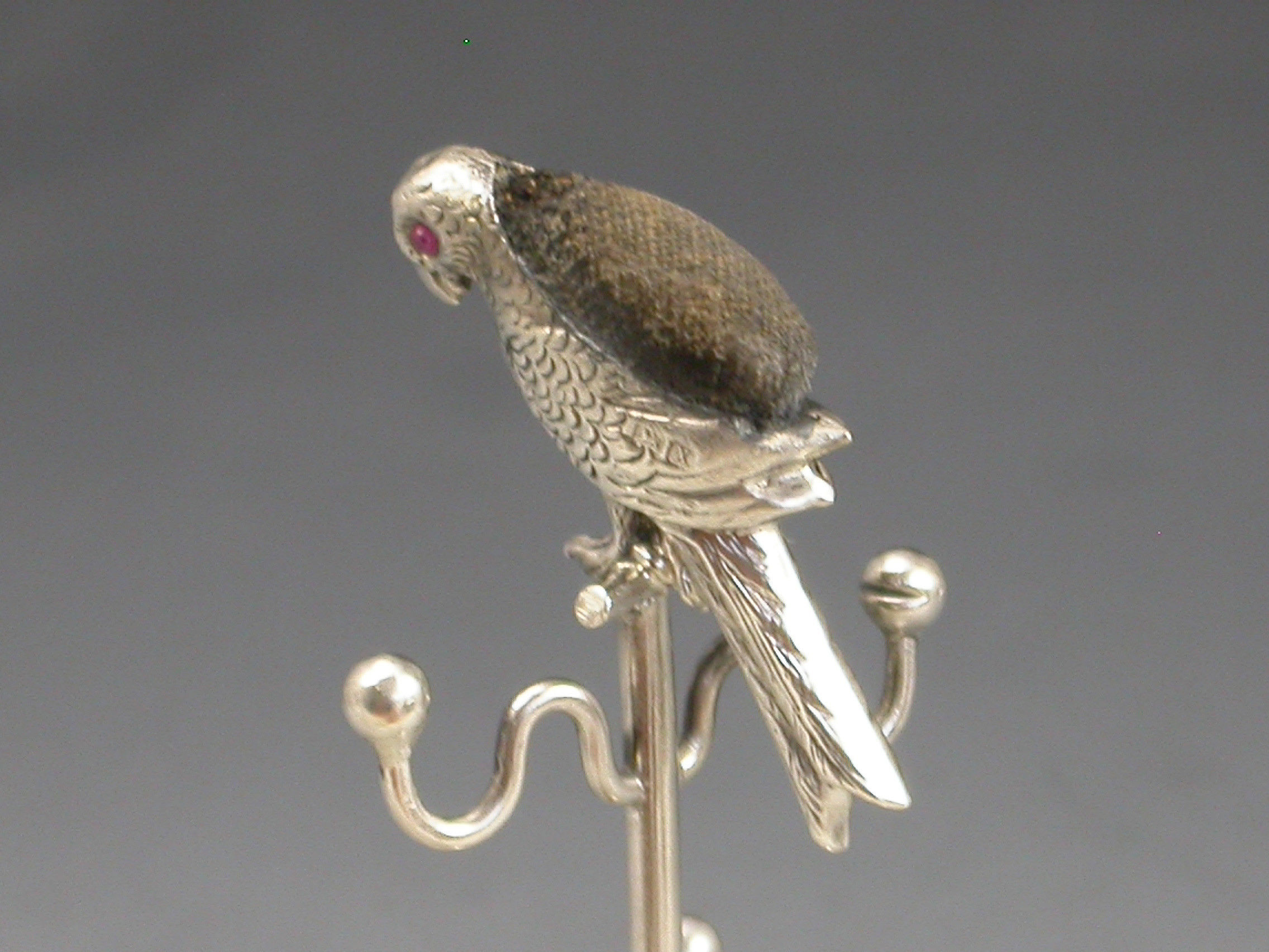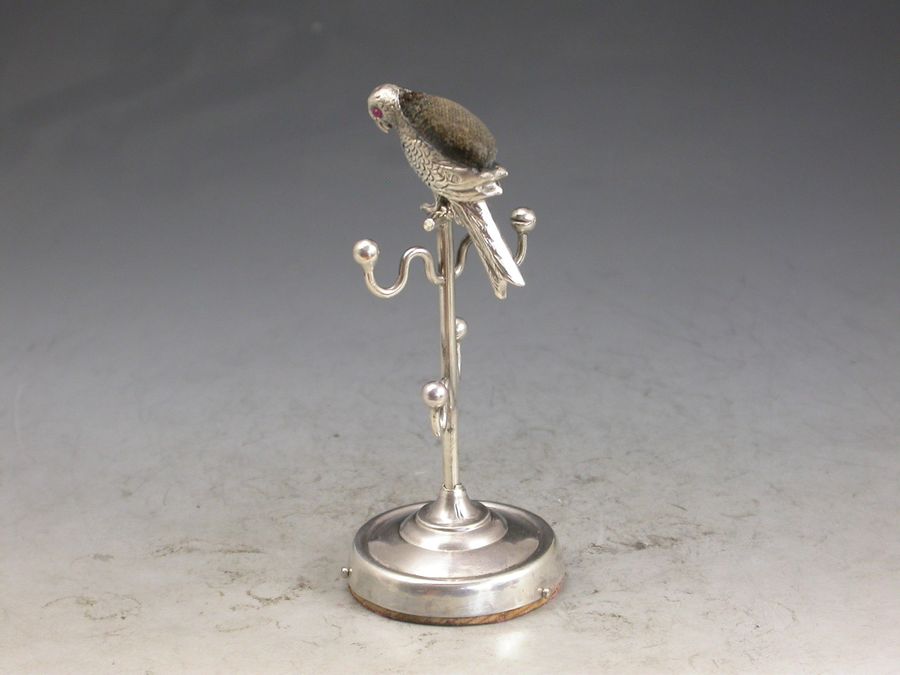 Edwardian Novelty Silver Parrot Pin Cushion / Ring Stand
