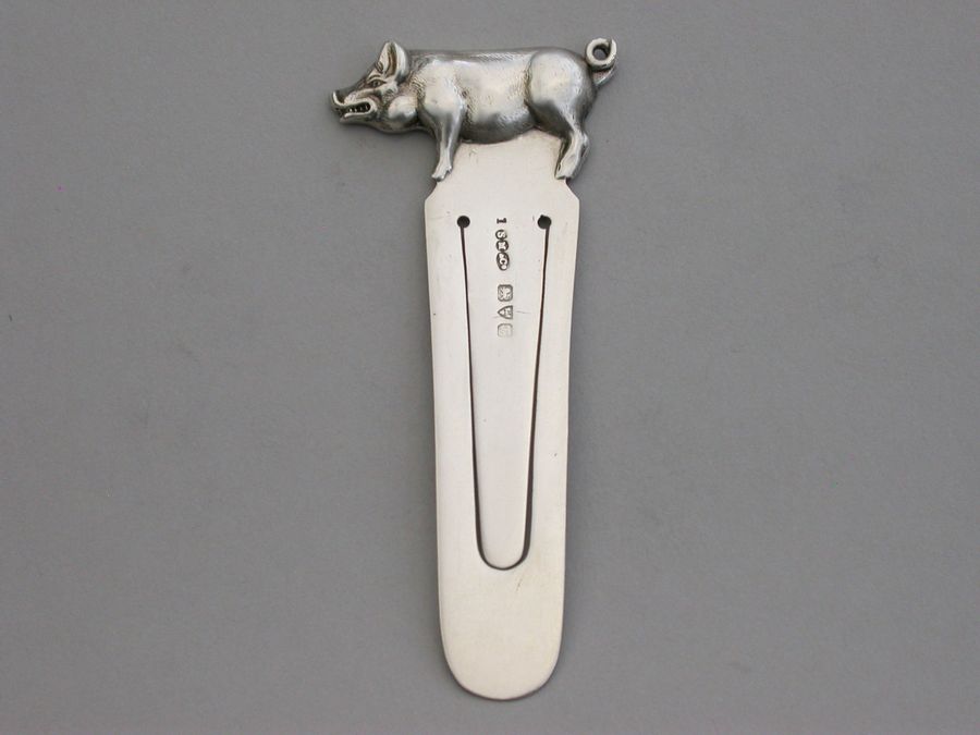 A good Edwardian silver novelty Bookmark, the terminal formed as a Pig or a Boar.