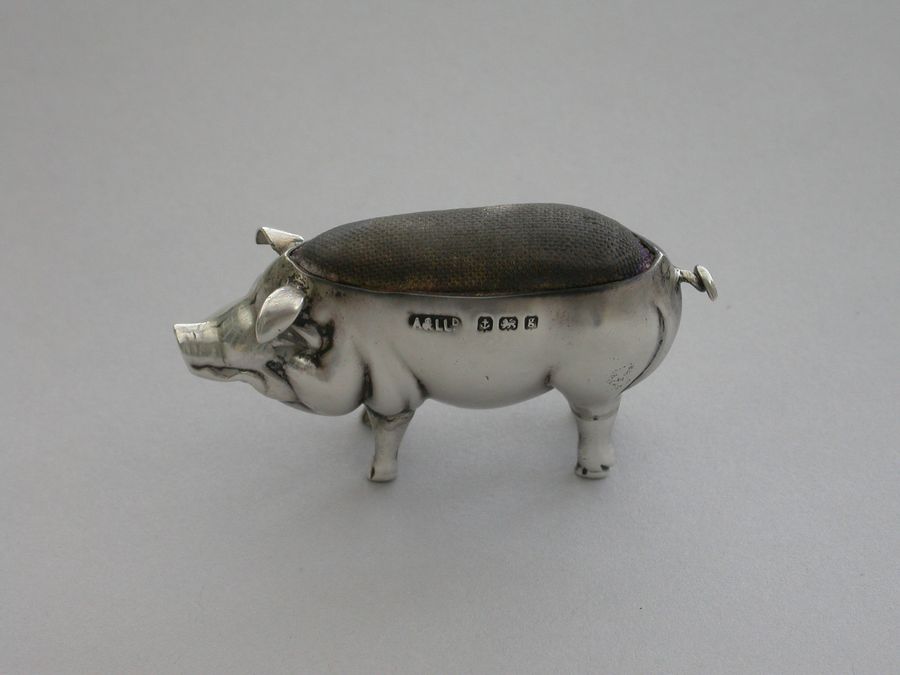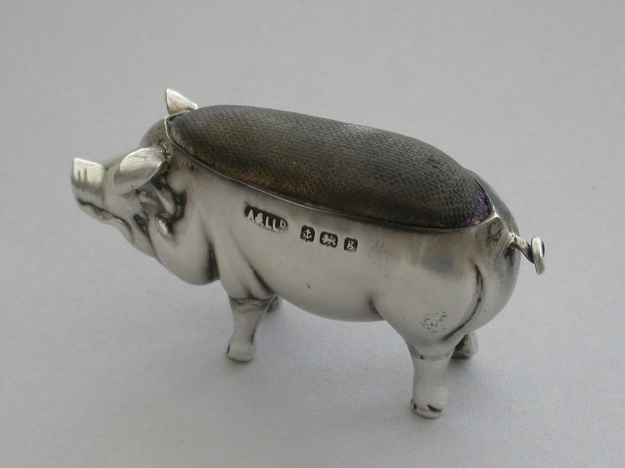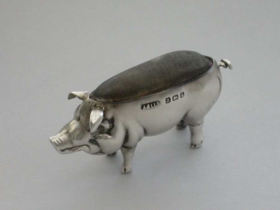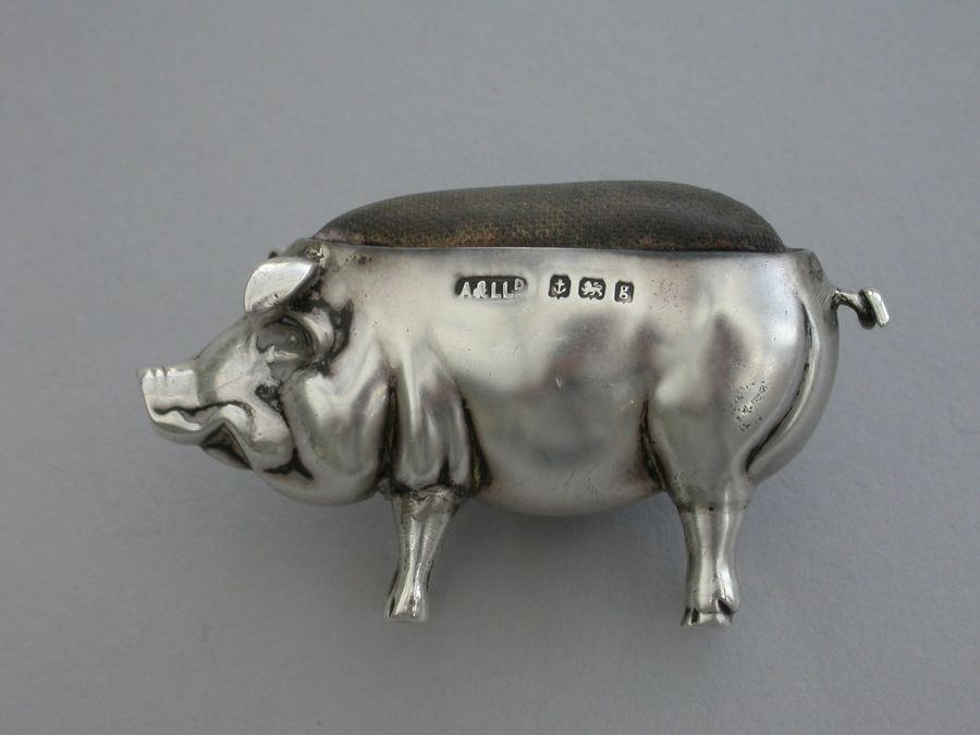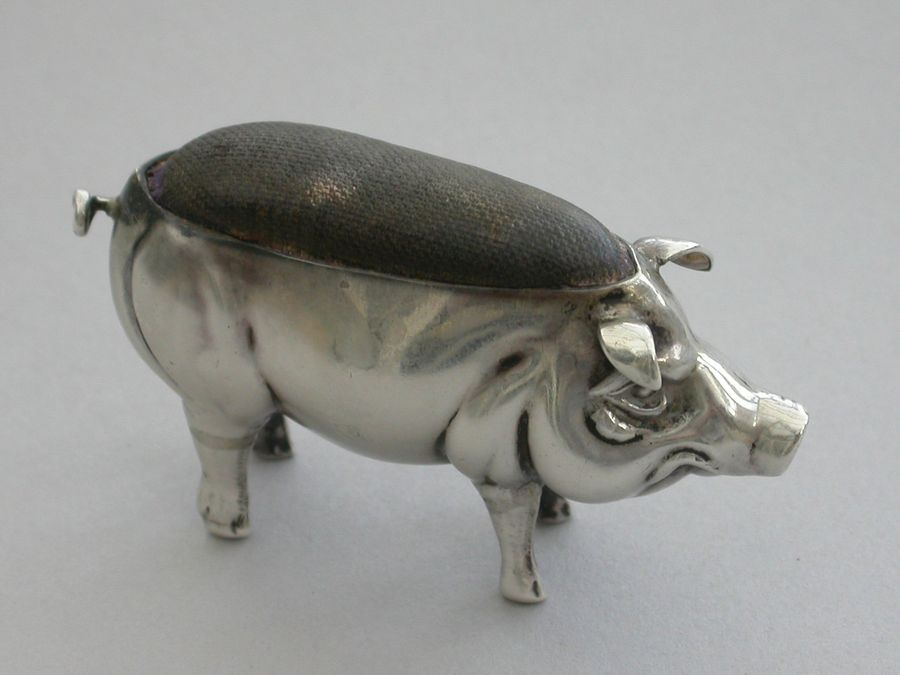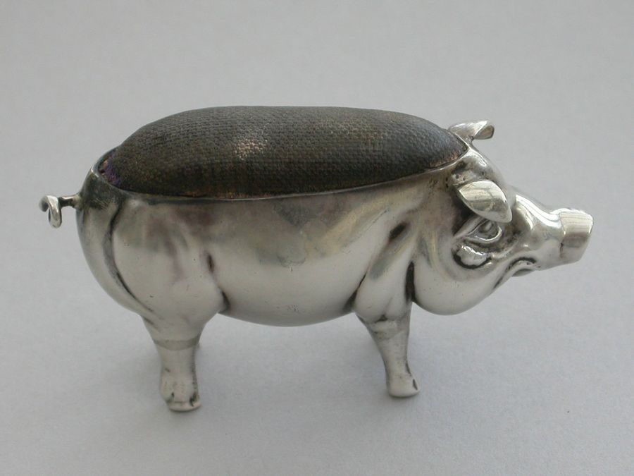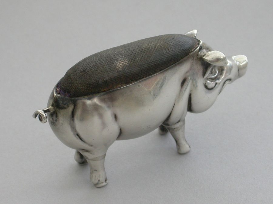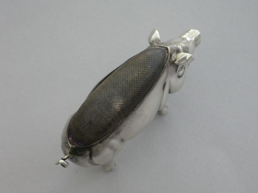 A good Edwardian novelty silver Pin Cushion made in the form of a small Pig.