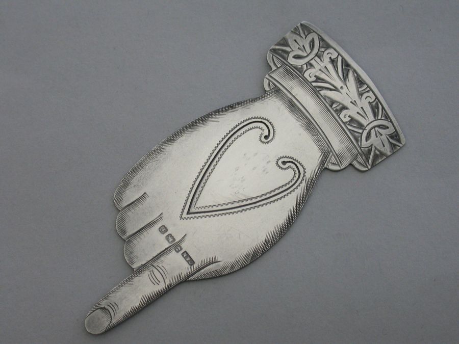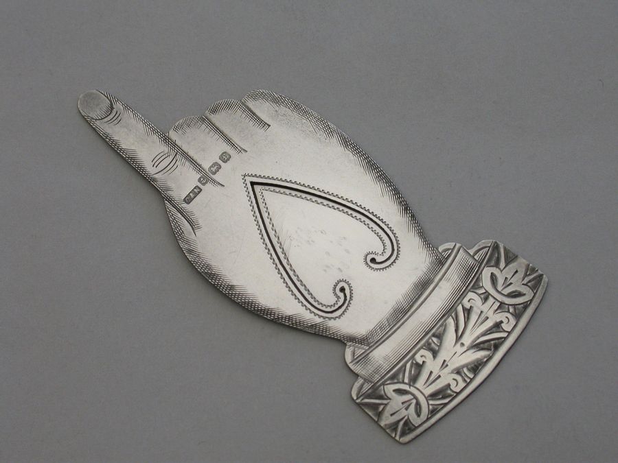 Edwardian Novelty Silver ""Pointing Finger"" Bookmark