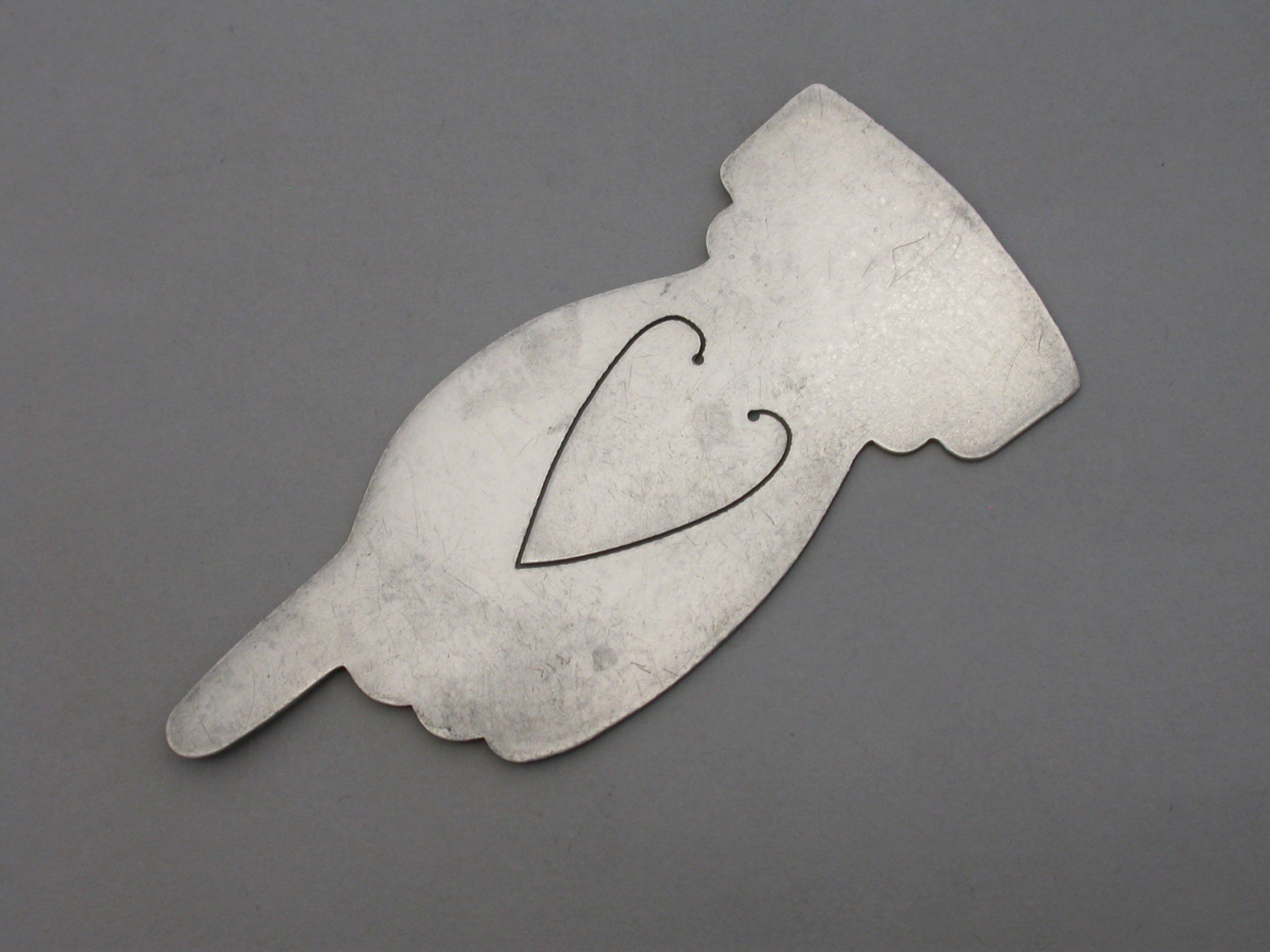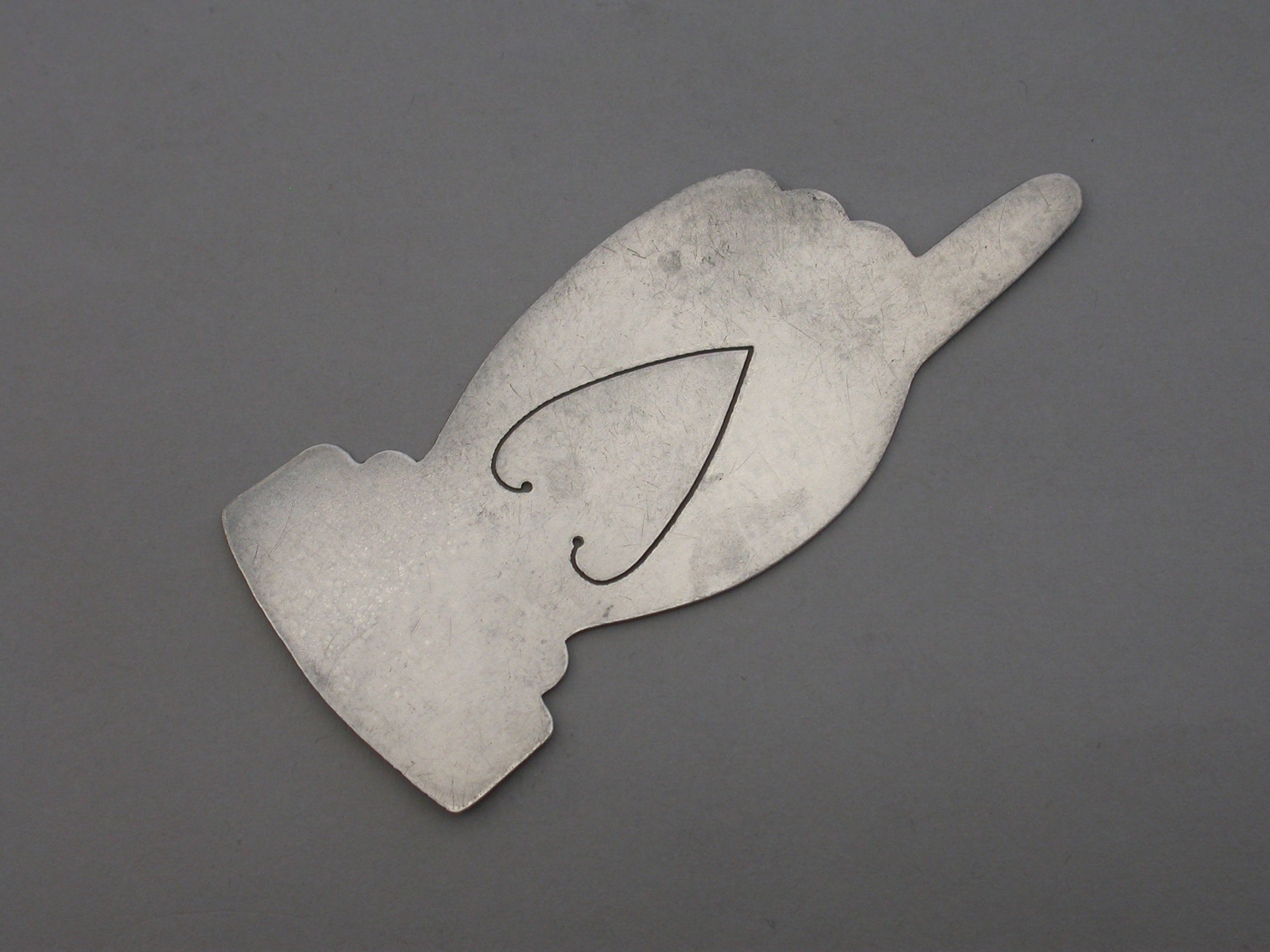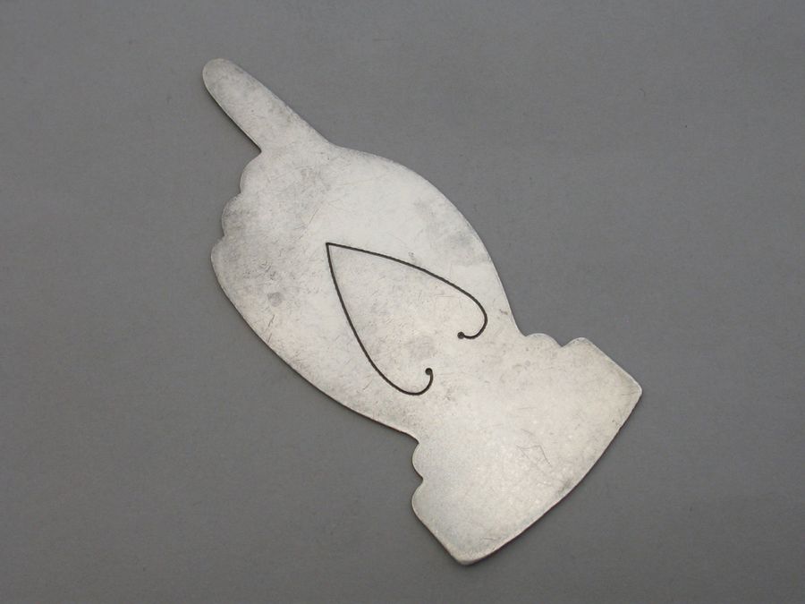 An Edwardian novelty silver bookmark modelled as a hand with a pointing index finger. Fine bright-cut engraved decoration to the cuff and lifelike engraving to the hand itself.