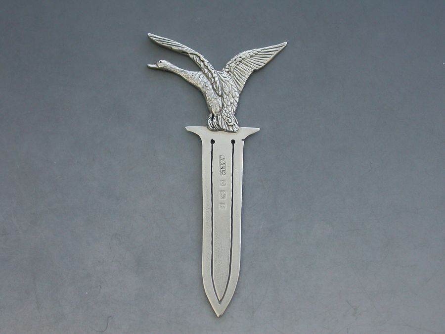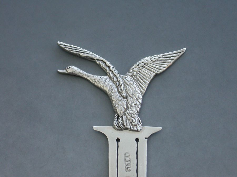 A rare Edwardian novelty silver Bookmark, the terminal formed as a swan taking flight.