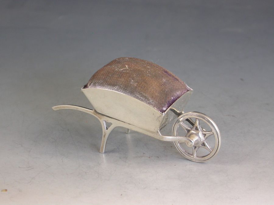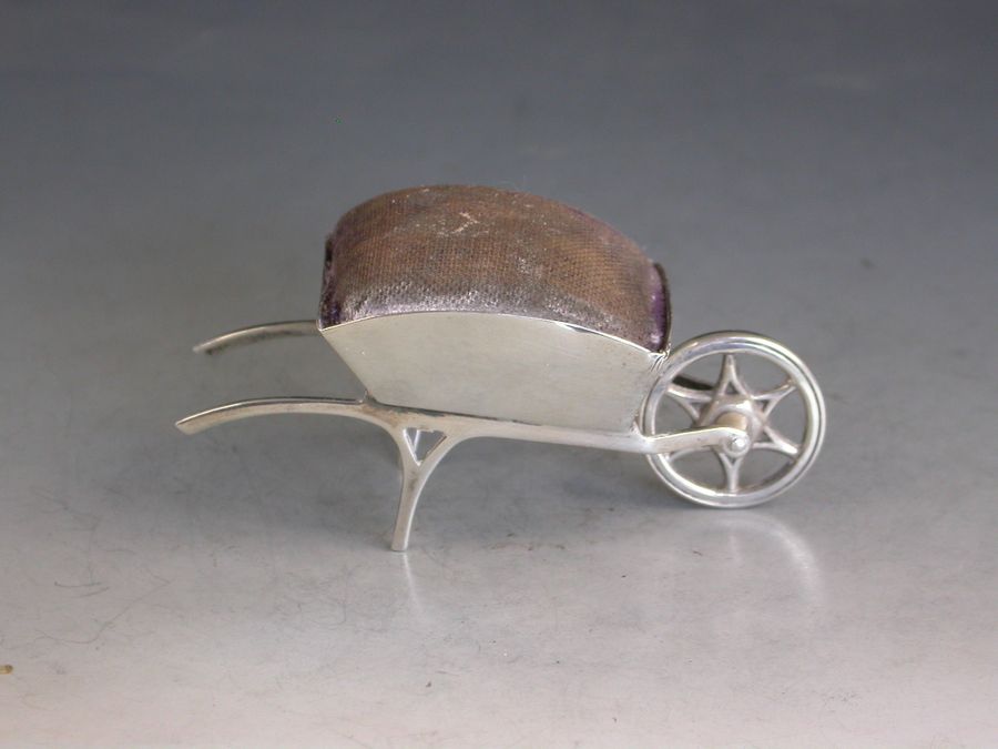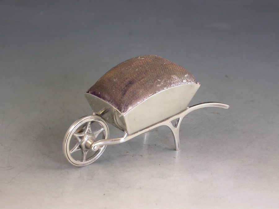 Edwardian Novelty Silver Wheel Barrow Pin Cushion