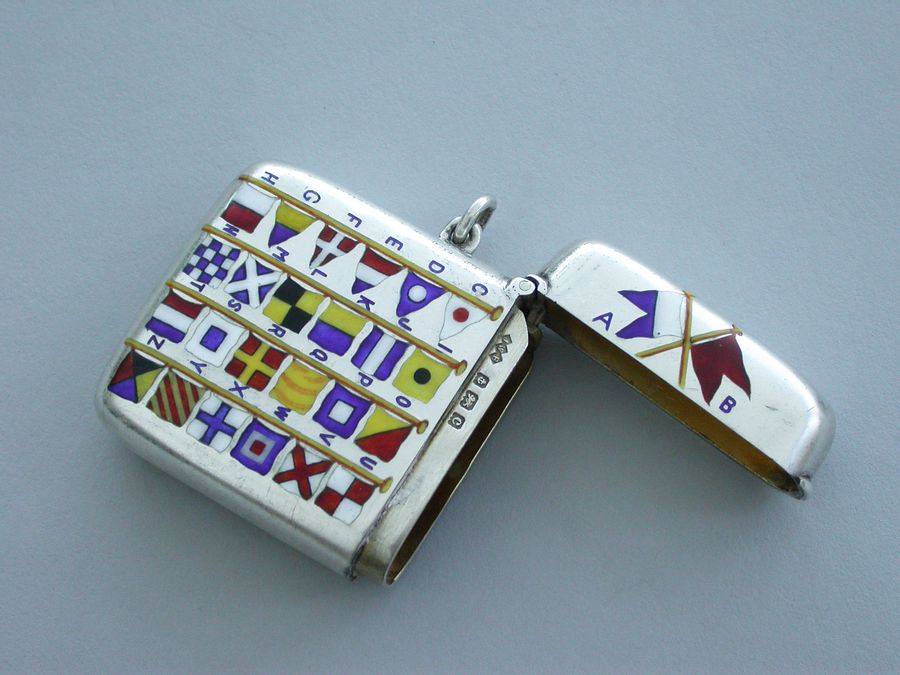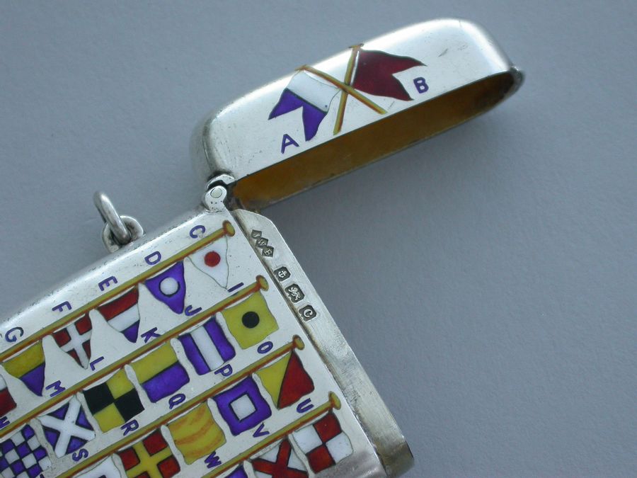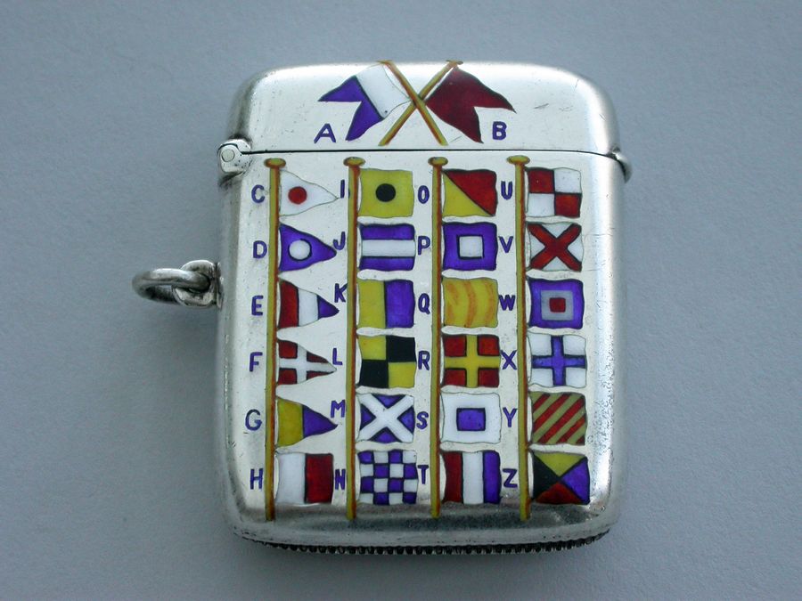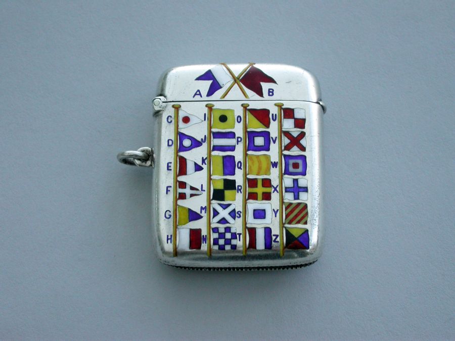 Edwardian Silver & Enamel Maritime Signal Flags Vesta Case