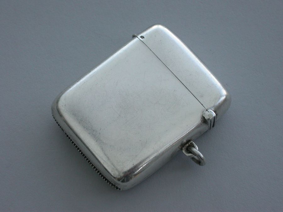 A good quality Edwardian silver Vesta Case of rounded rectangular form with sprung hinged lid and attached suspension ring, the face and the lid finely enamelled with the full alphabet of maritime signal flags. Silver gilt interior.