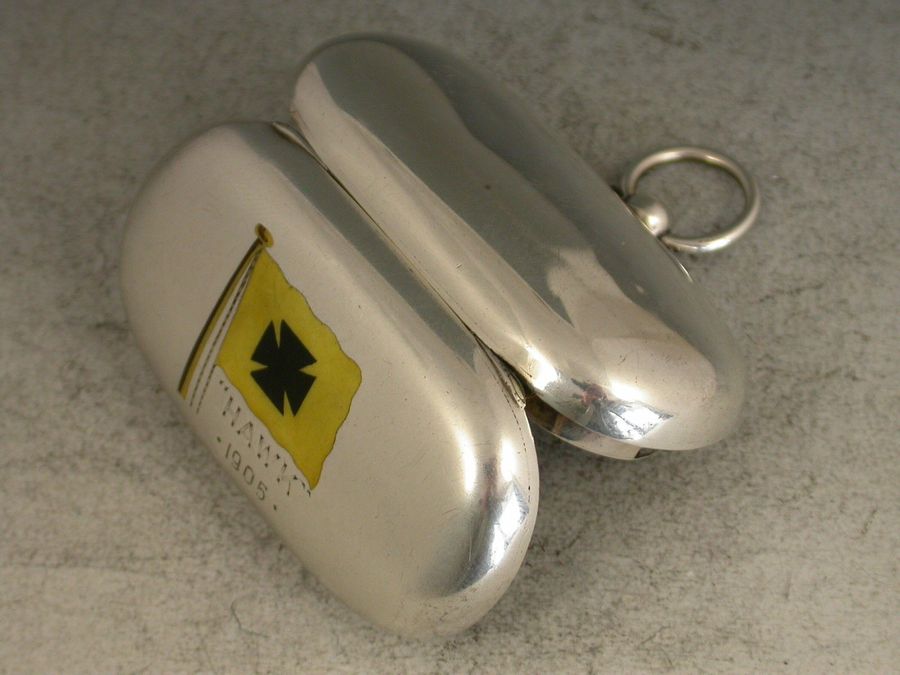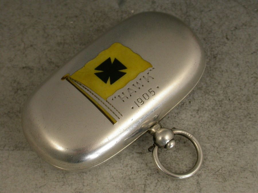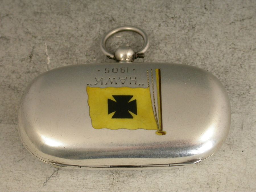 Edwardian Silver & Enamel Shipping Interest Double Sovereign Case 'HMS Hawk'