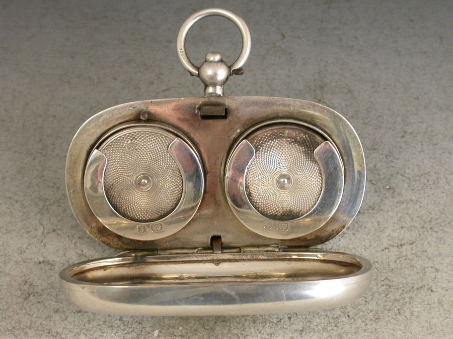 A good Edwardian silver and enamel double Sovereign Case of rounded rectangular form with attached suspension ring and sprung push button opening mechanism, the lid enamelled with a yellow flag with black Maltese Cross for HMS Hawk 1905.