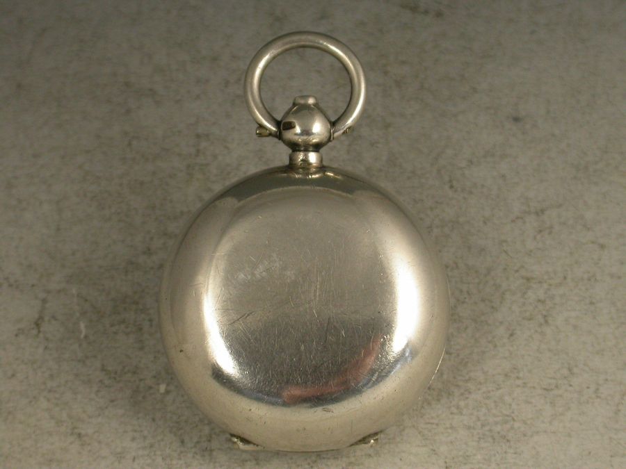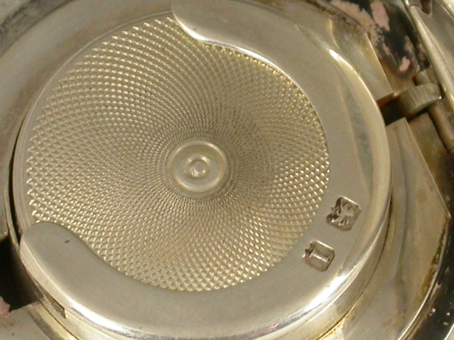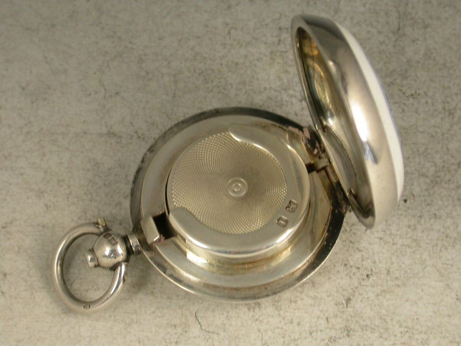 A fine and rare Edwardian silver Sovereign Case of circular form with the cover most unusually enamelled to represent a ""Willow Pattern Plate"", with single sprung interior compartment, attached suspension ring and push button opening mechanism.
