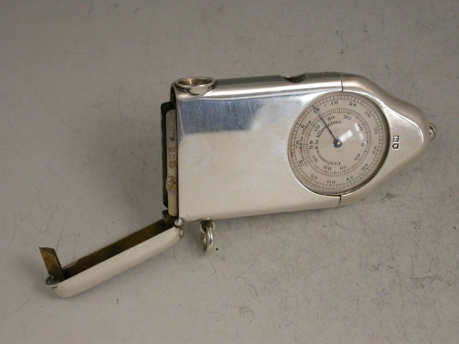 Edwardian Silver Combination Vesta Case, Cigar Cutter & Map Measuring Tool