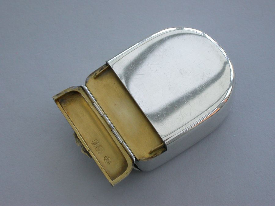 A fine quality Edwardian silver combination Vesta Case and Pocket Watch Holder of domed rounded rectangular form, with hinged lids and silver gilt interior lined with blue velvet. Complete with contemporary gun metal pocket watch.