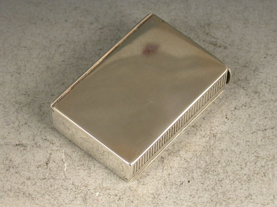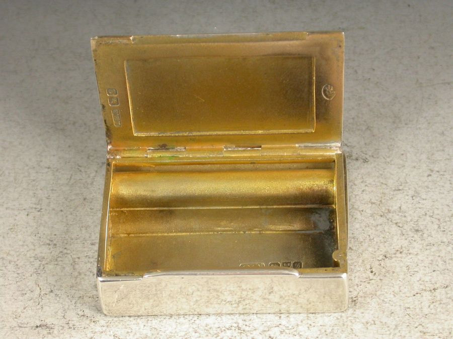 An unusual and nice quality Edwardian plain silver Vesta Case combined with a wick or slow match holder. The Vesta compartment with sprung lid held in place by the hinged side cover, a third hinged lid with attached loop that would have been fixed to the internal wick held within a tubular compartment. Silver gilt interiors.