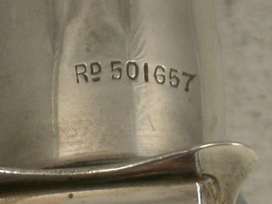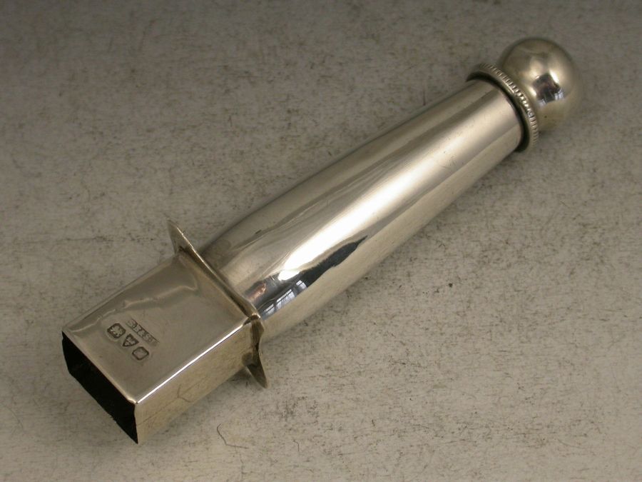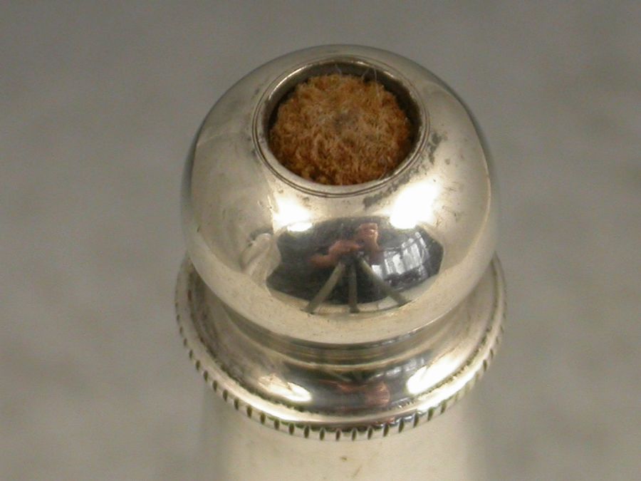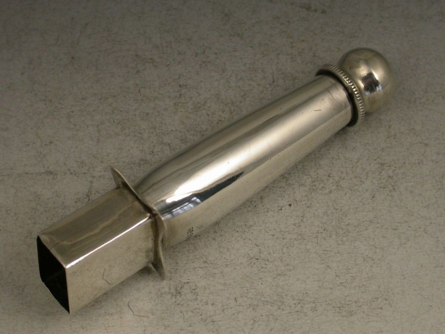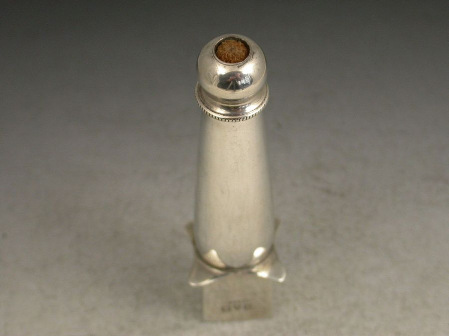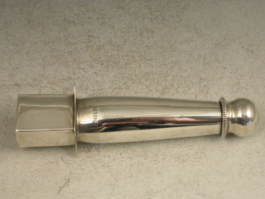 An unusual Edwardian silver combined Stamp Moistener and Sealing Wax Holder of a registered design, the tapering tube with screw off end and felt tip designed to apply moisture at specific points.