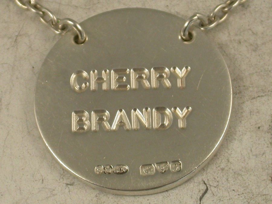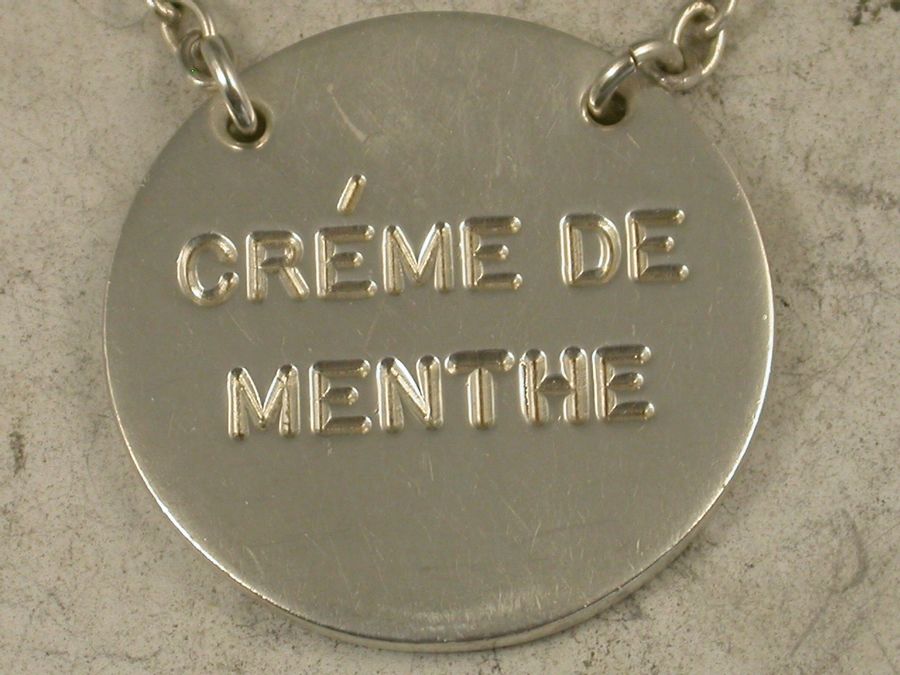 An unusual Edwardian silver Liqueur Label of plain disc shape and of a heavy gauge, engraved both front and back with the unusual titles, Cherry Brandy and Creme de Menthe.