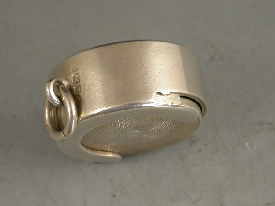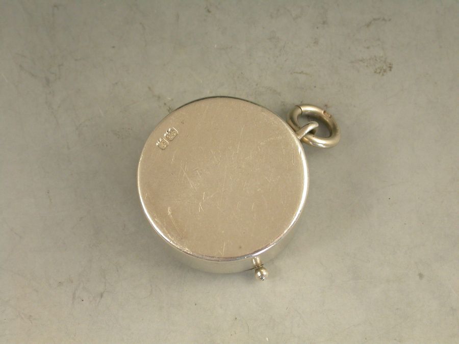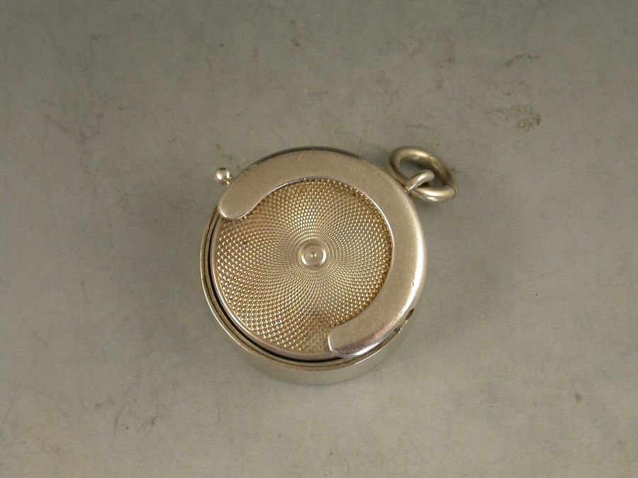 An unusual Edwardian silver Sovereign Case of circular form with attached suspension ring, an open sprung sovereign compartment with side loading slot and swiveling catch to secure the coins.