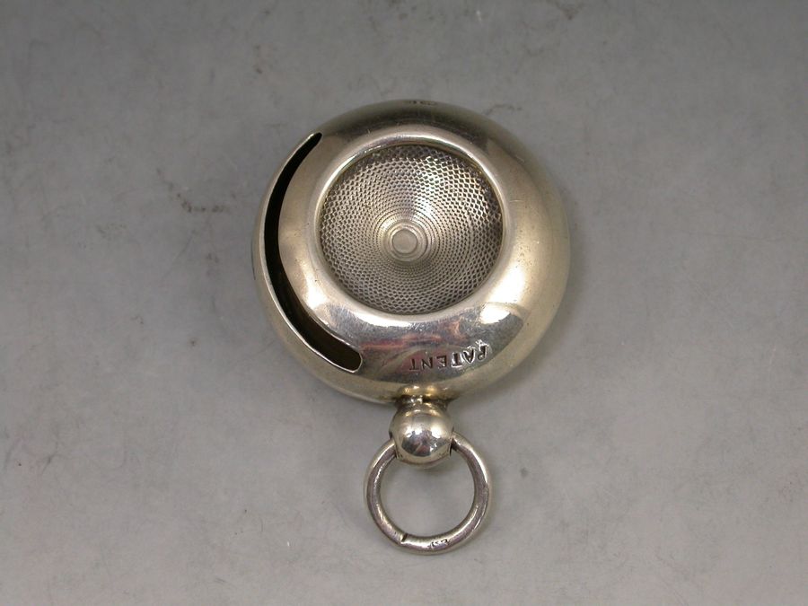 An unusual Edwardian silver Sovereign Case of compressed circular form with attached suspension ring, an open sprung central sovereign compartment with side loading slot. A patented design.