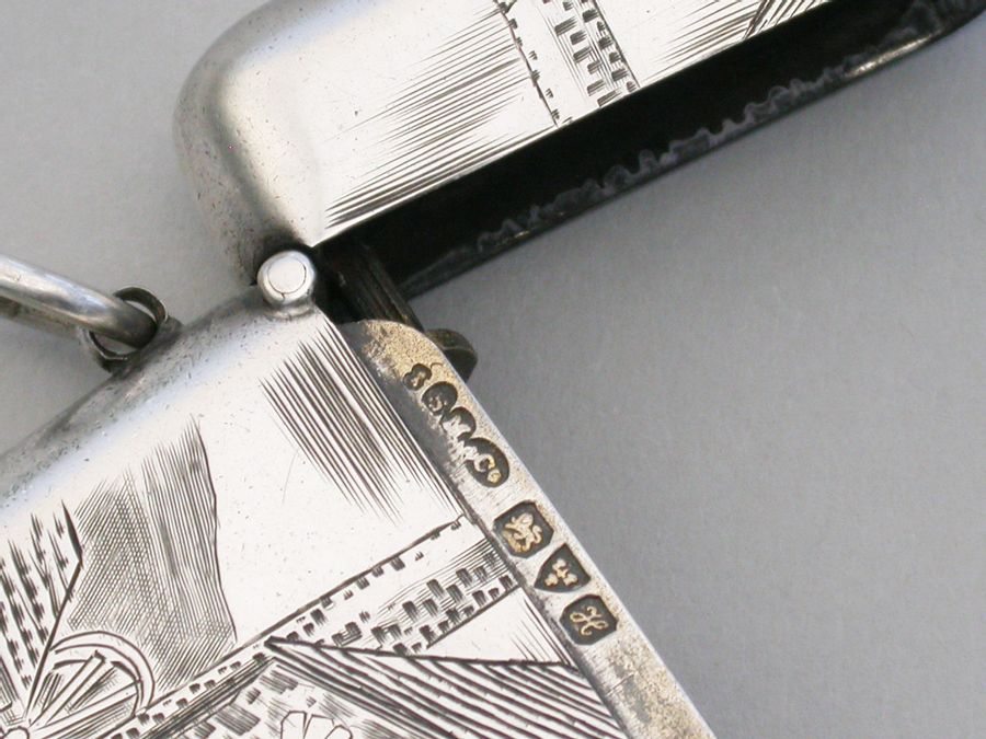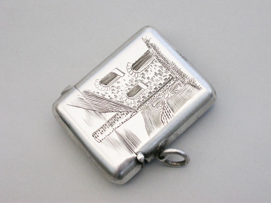 Edwardian Silver Vesta Case - Seamless Non-Choke - Engraved Mill House Scene