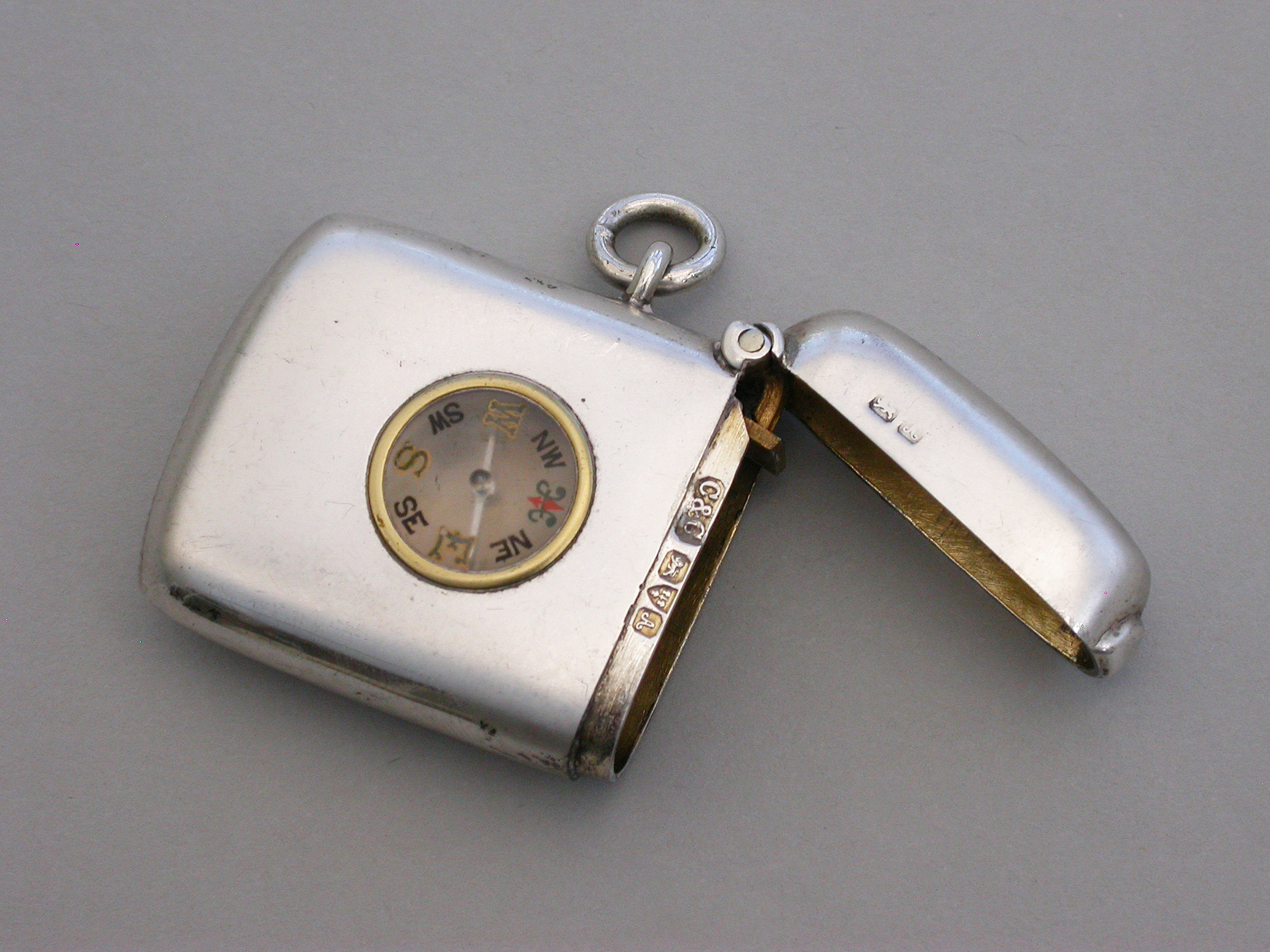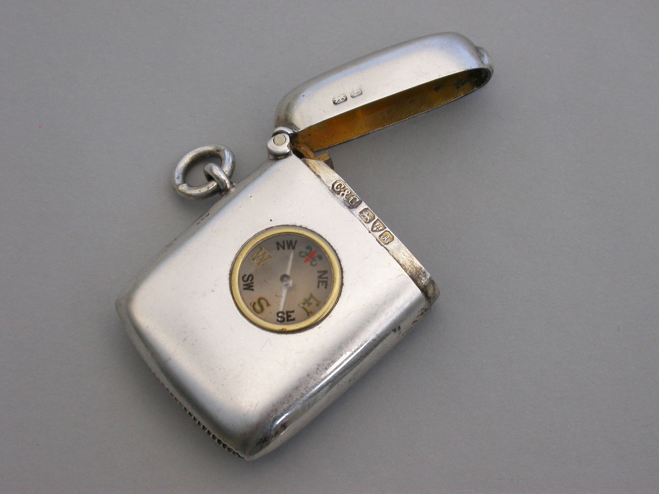 Edwardian Silver Vesta case with inset Compass