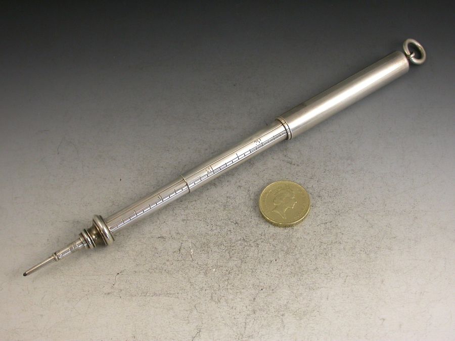 Extra Large Victorian Antique Silver Telescopic Ruler Propelling Pencil