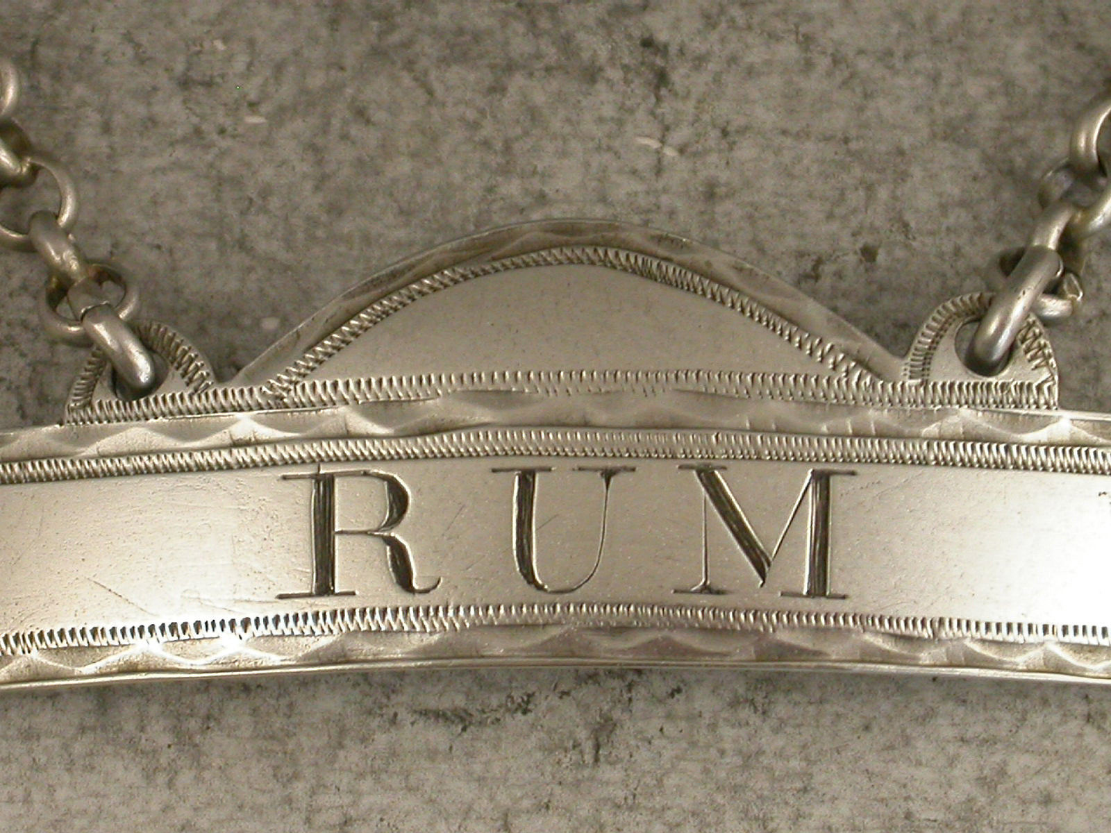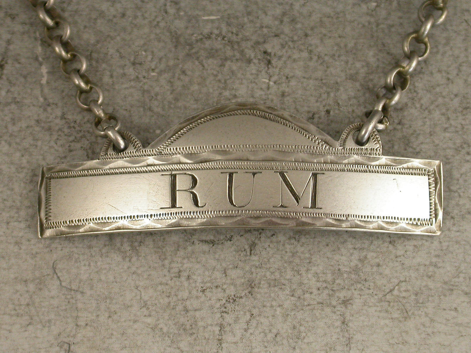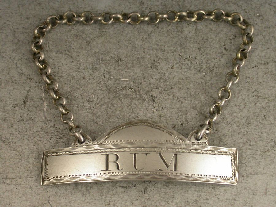 Fine George III Provincial Silver Domed Rectangular Wine Label 'Rum'