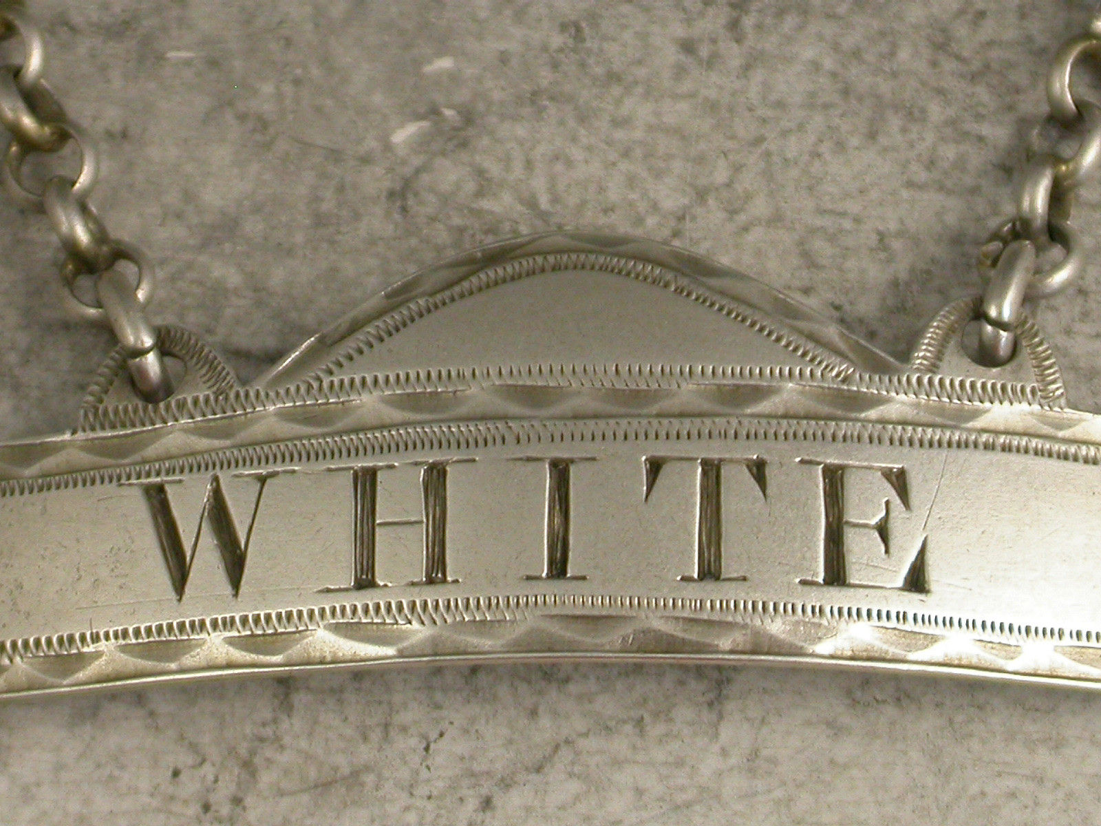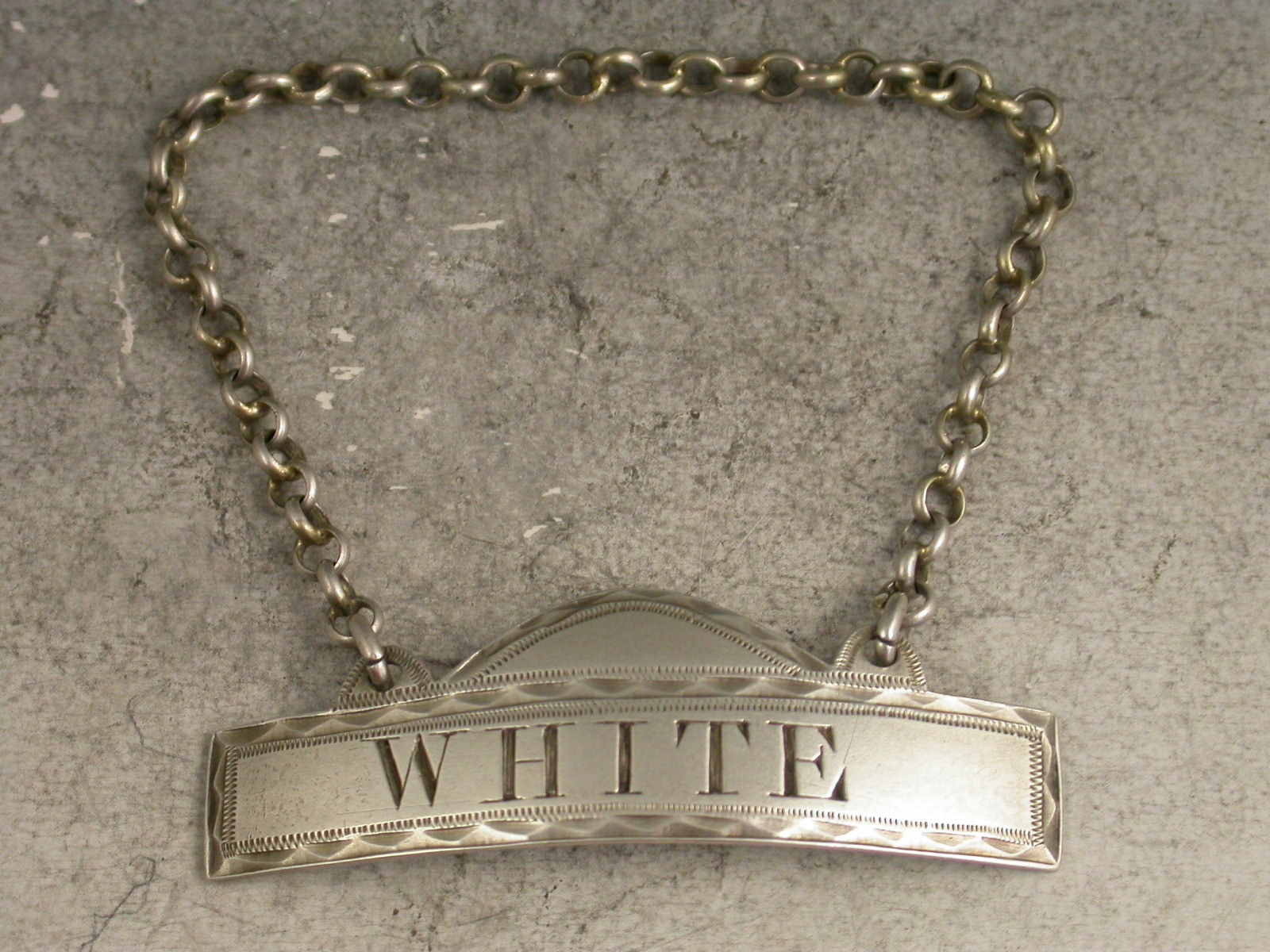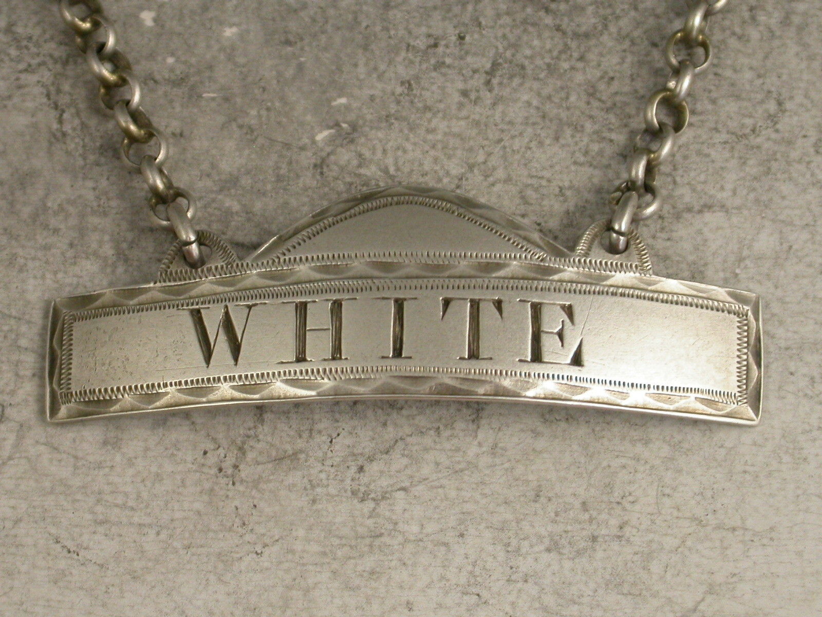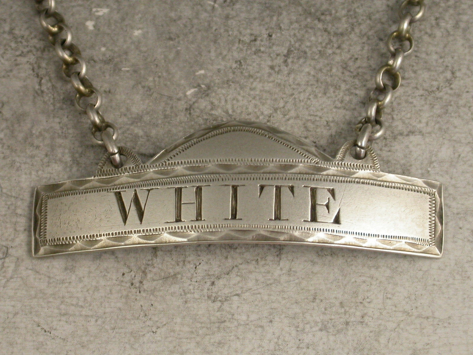Fine George III Provincial Silver Domed Rectangular Wine Label 'White'
