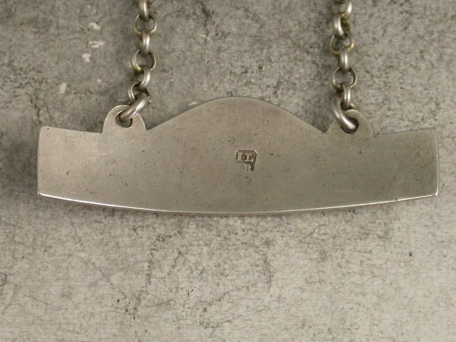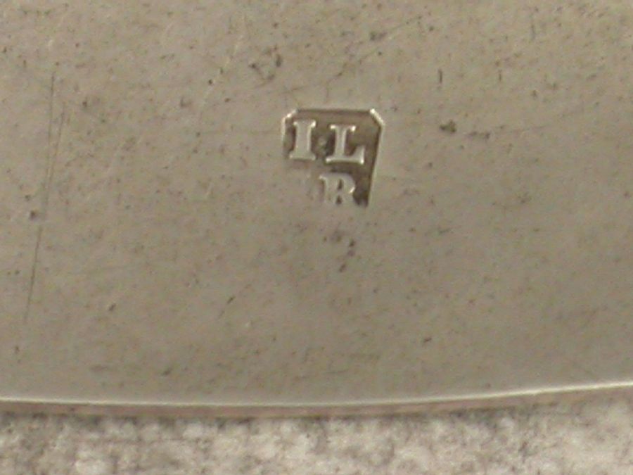 By John Langlands I & John Robertson I, Newcastle c1778 - 1784. (Makers mark only I.L over I.R. 1st Mark entered in 1778 with dots between letters). Probably engraved in the Beilby Bewick Workshop - See Wine Labels, 1730 - 2003 By John Salter, pages 228 - 229.