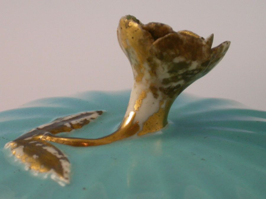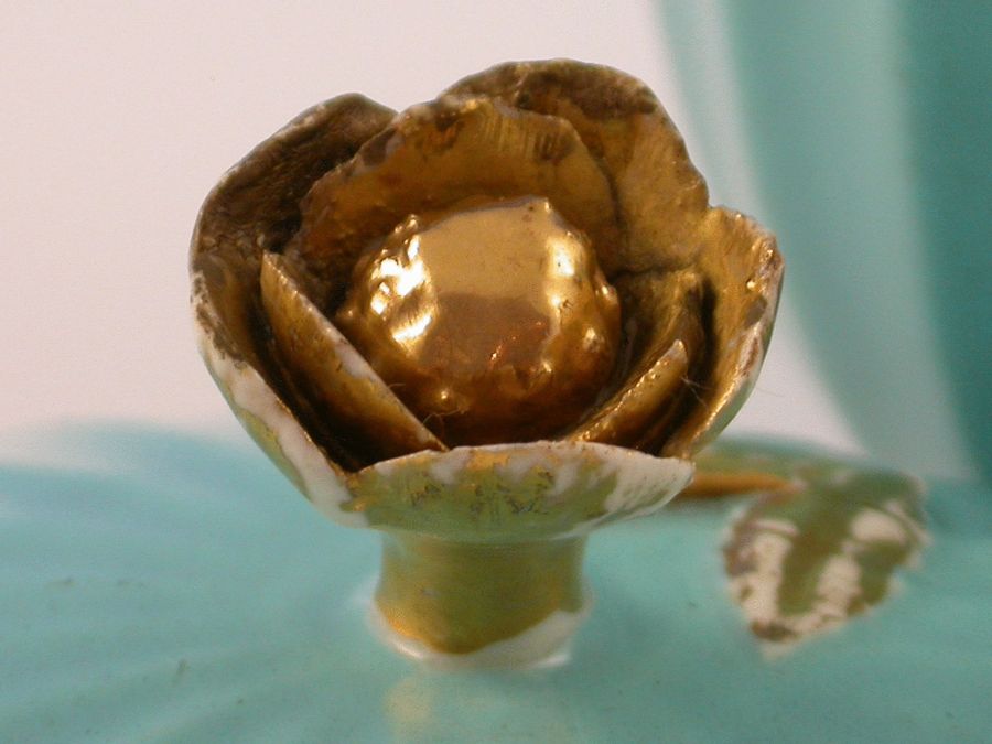 In good condition with no damage or repair, but wear to the gilt rims and floral knop.
