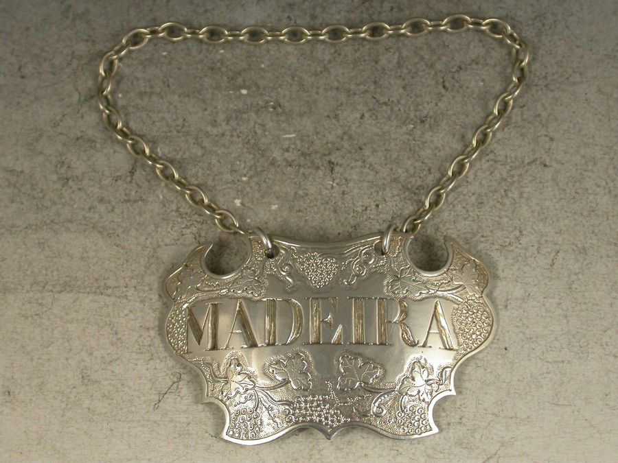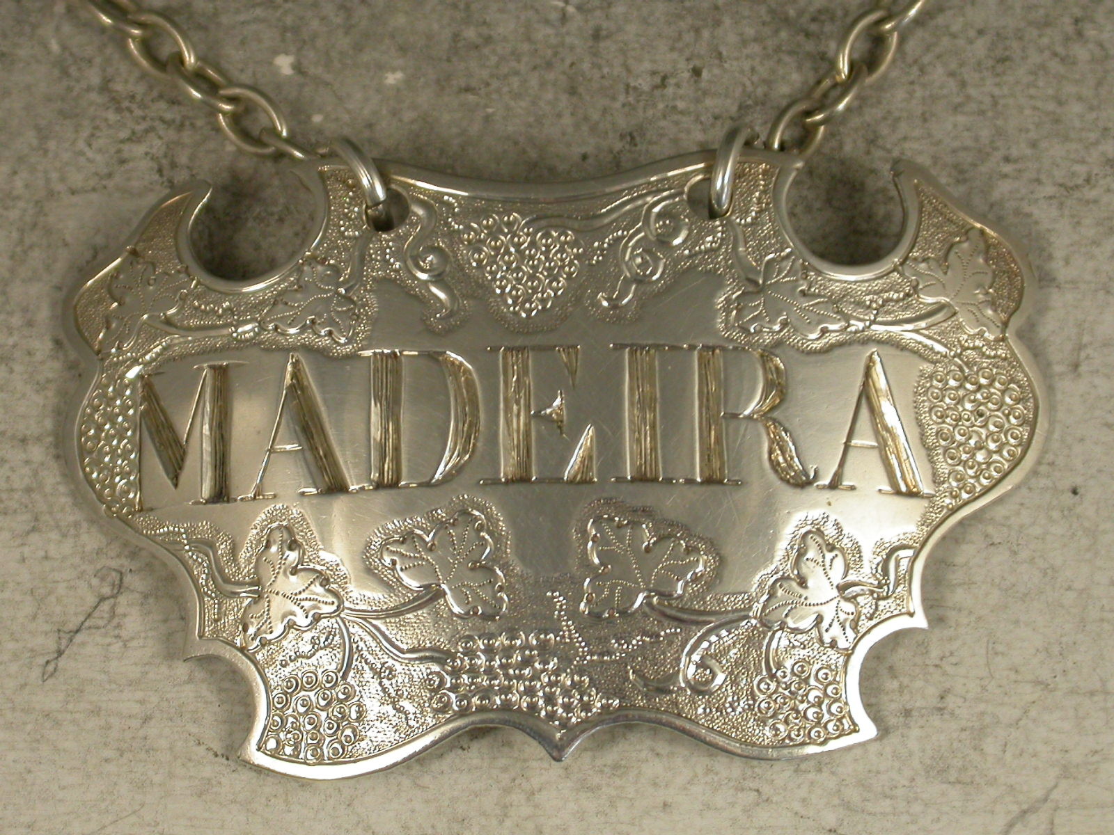 George II Antique Silver Chased Escutcheon Wine Label 'Madeira'