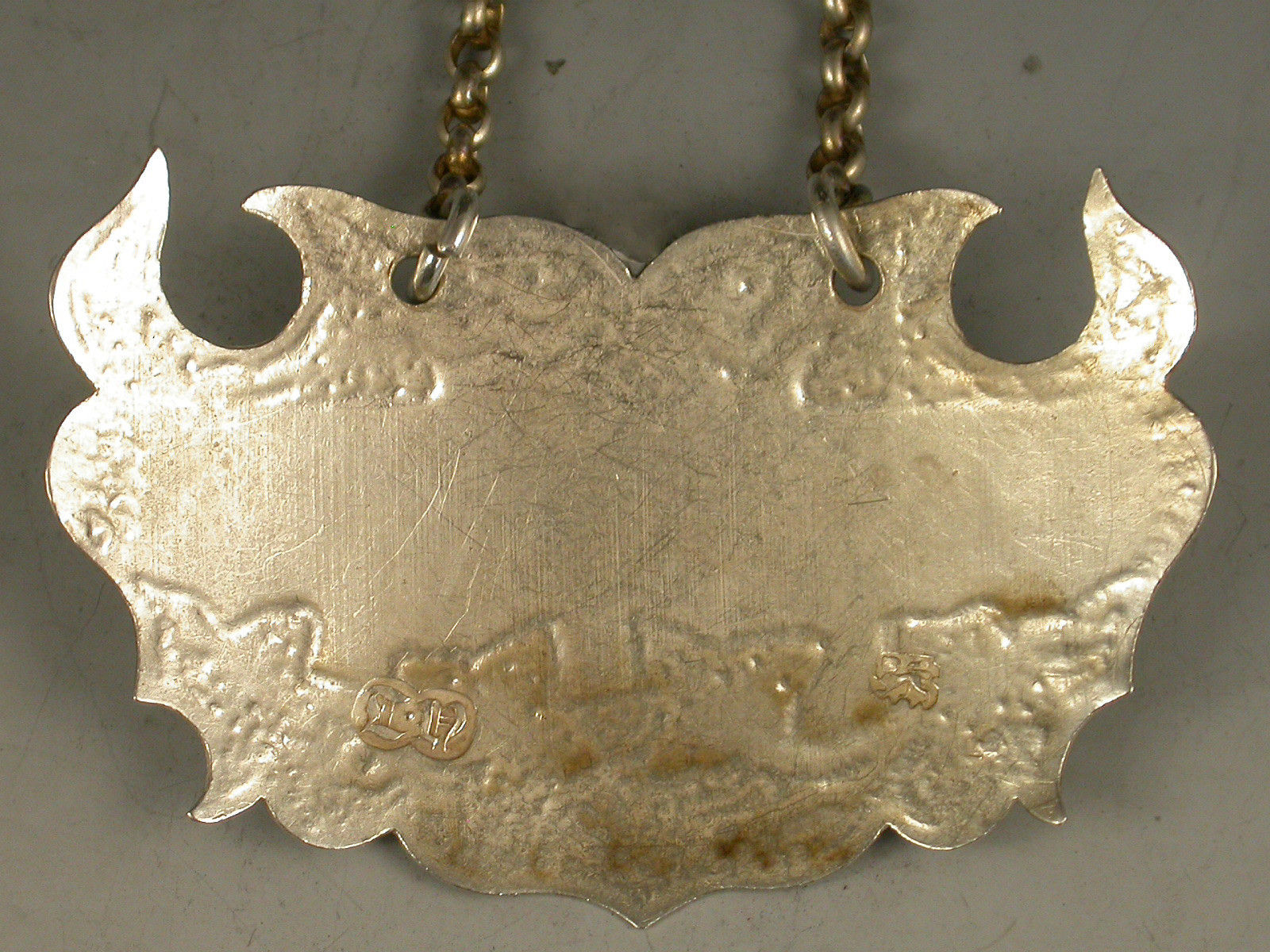 George II Antique Silver Chased Escutcheon Wine Label 'Old Hock'