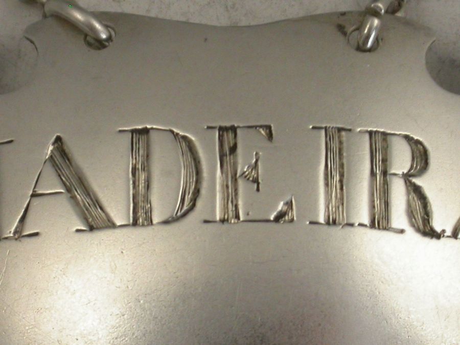 George II Antique Silver Escutcheon Wine Label 'Madeira'