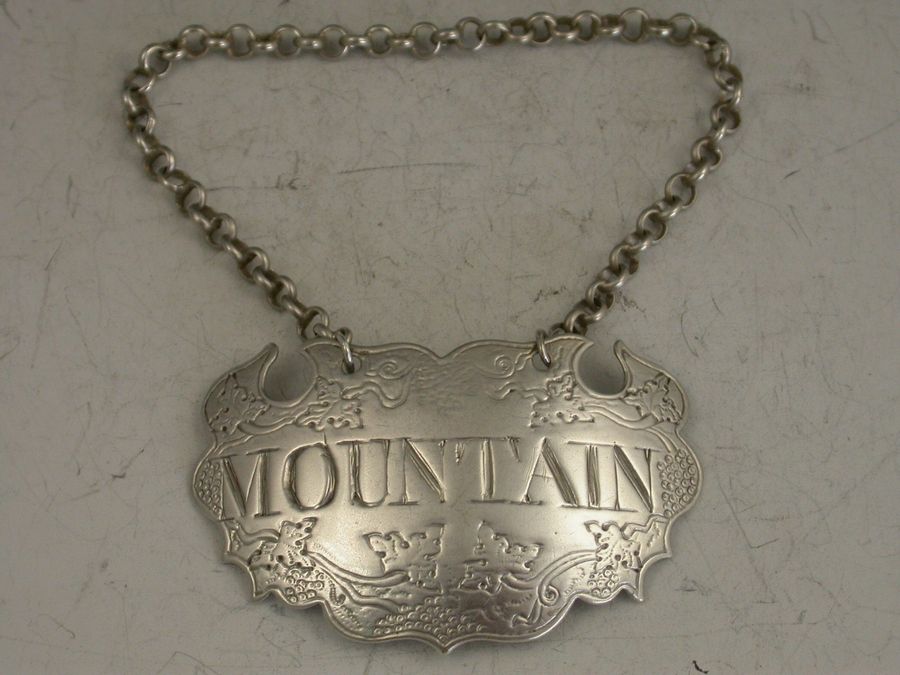 George II Antique Silver Escutcheon Wine Label 'Mountain'