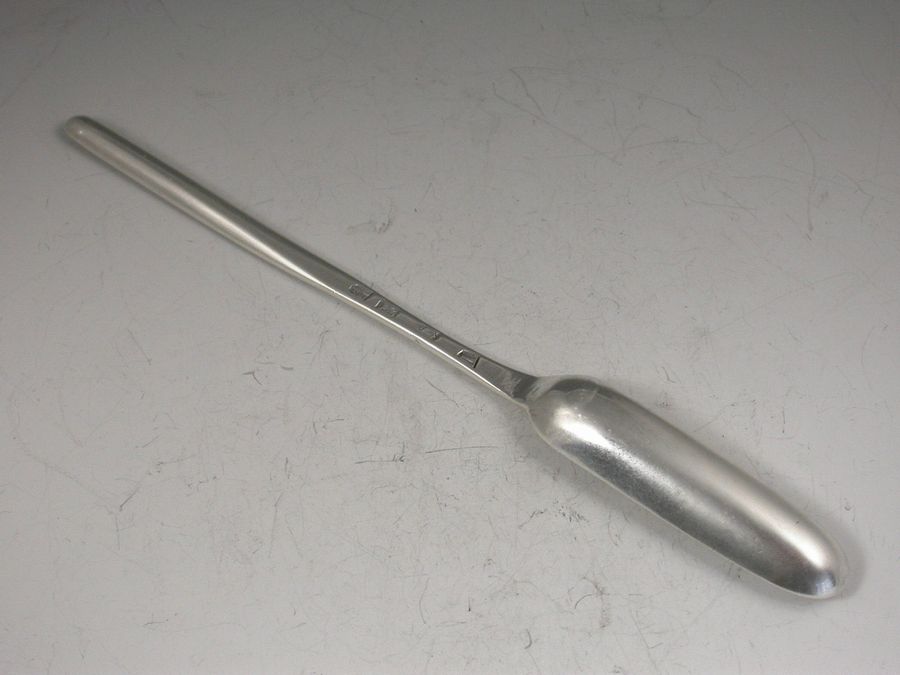 A good early 18th century Georgian silver Marrow Scoop of typical double ended form. By a maker who appears to have been a bit of a Marrow Scoop specialist.