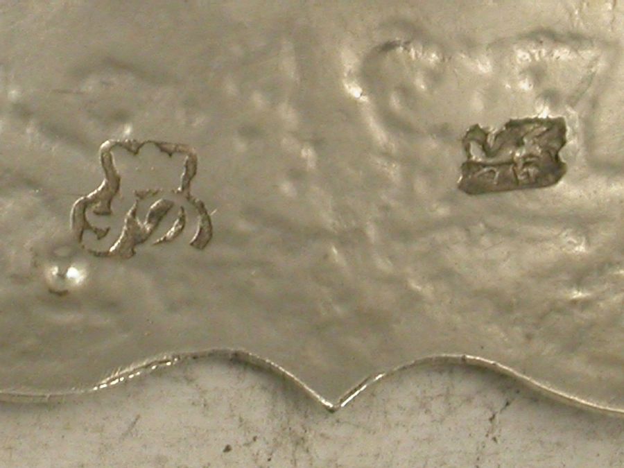A rare George II silver Wine Label of chased escutcheon form, incised for Rhenish (a scarce title), between vine leaves and grapes
