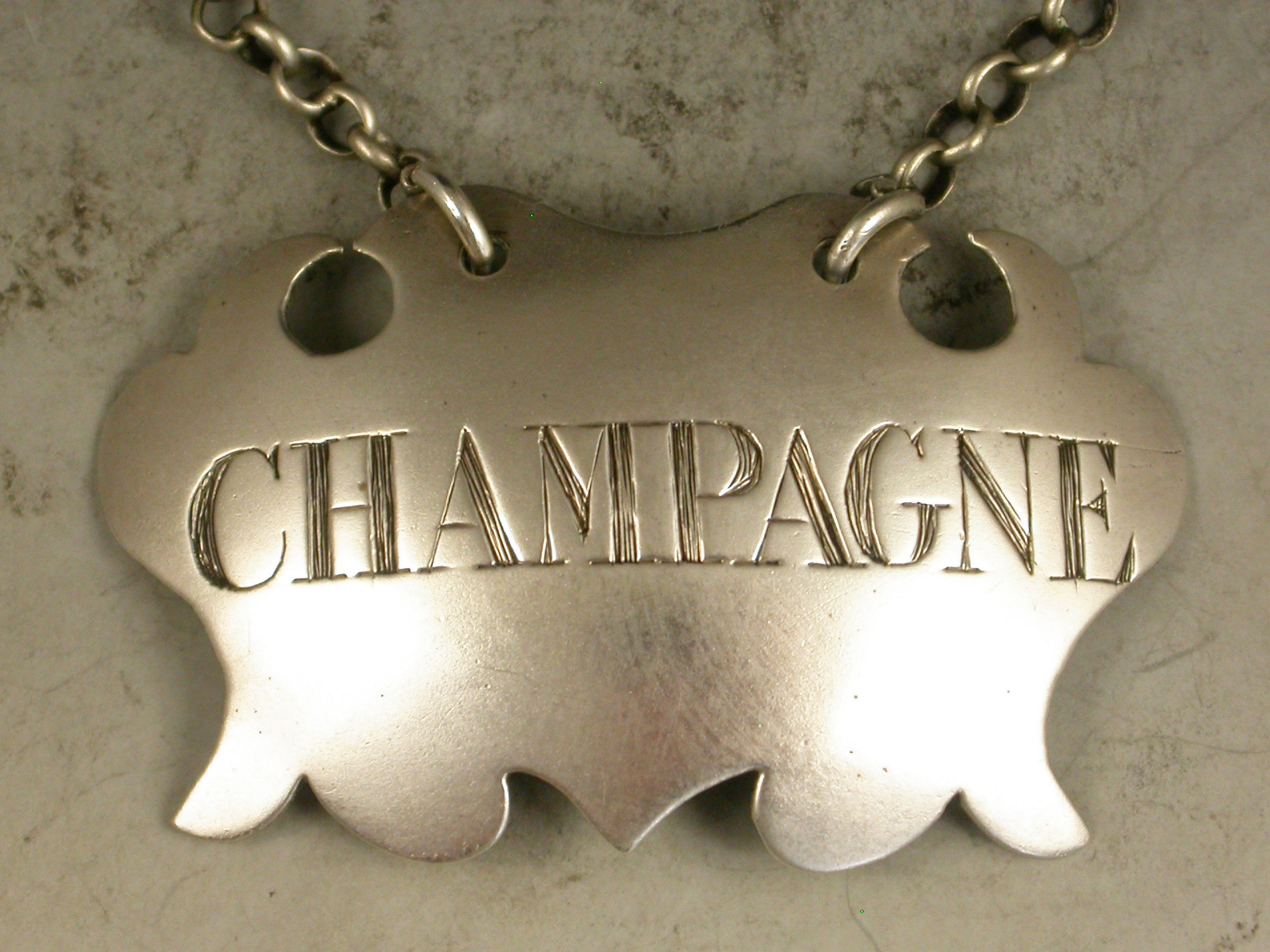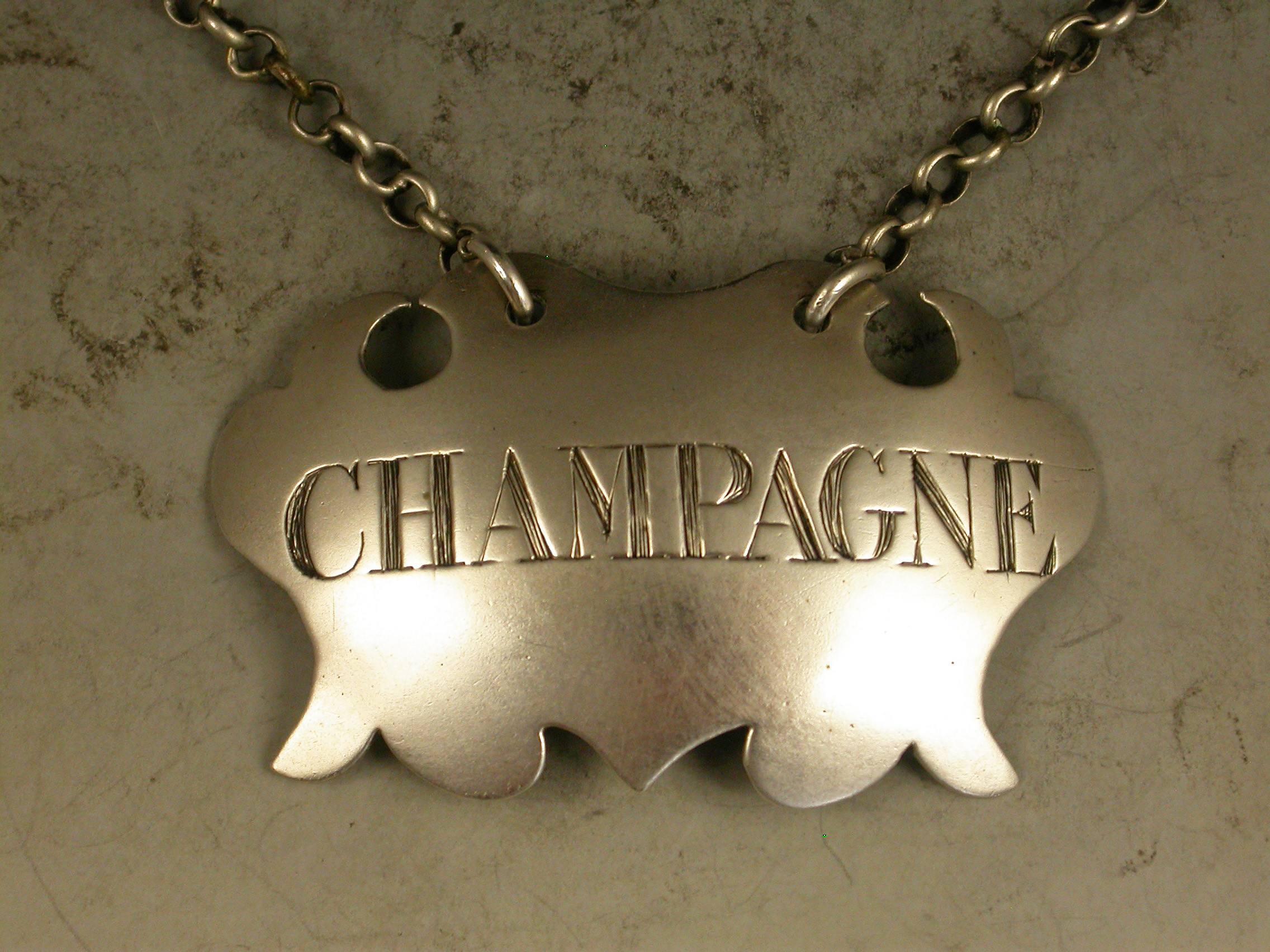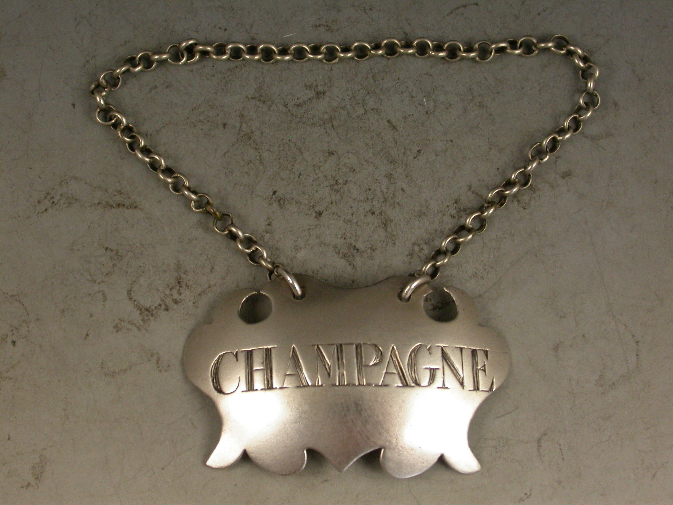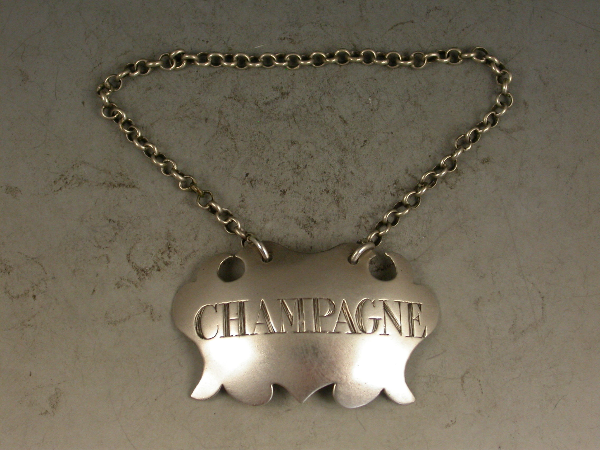 George II Silver Plain Escutcheon Wine Label 'Champagne'