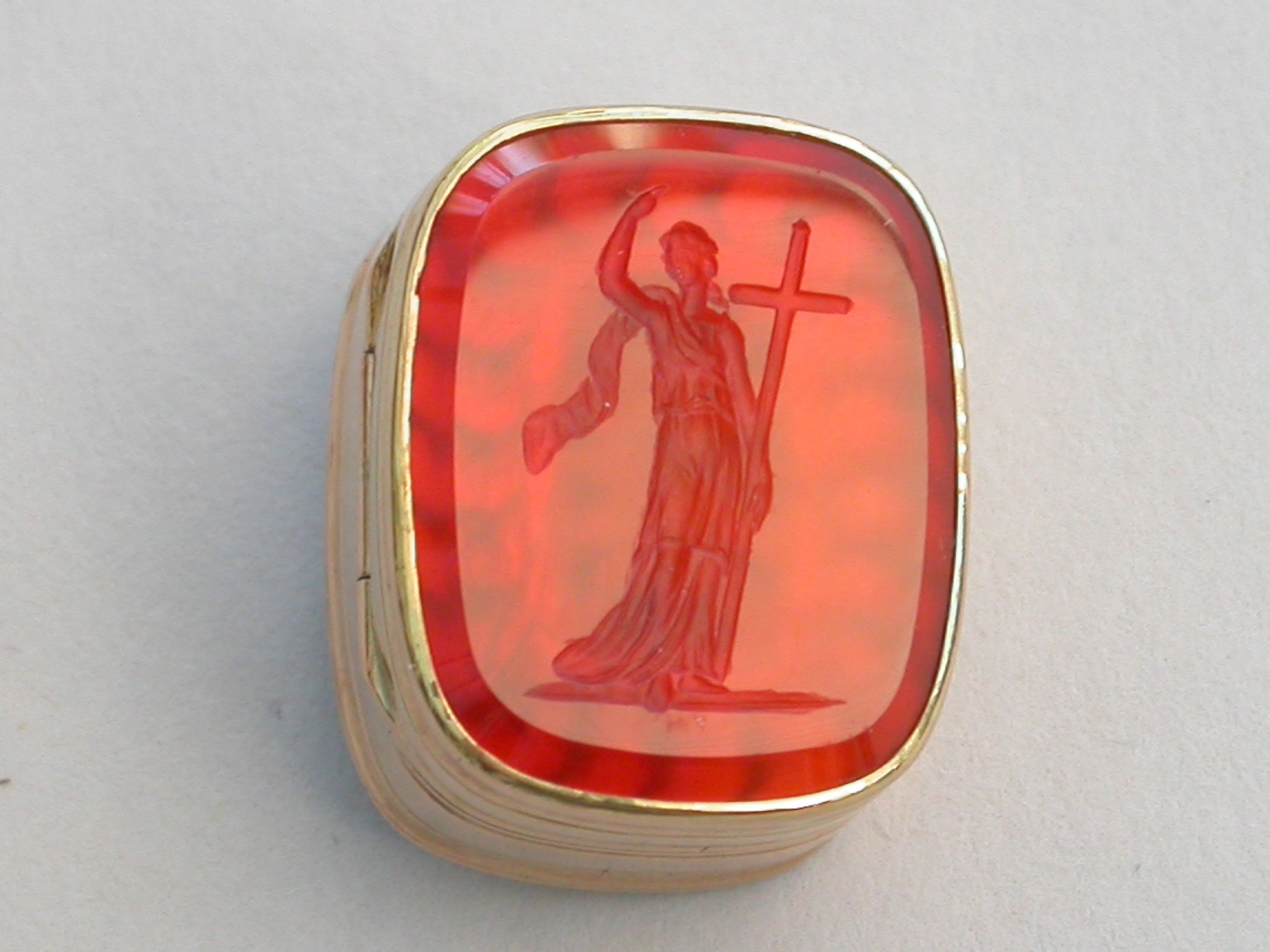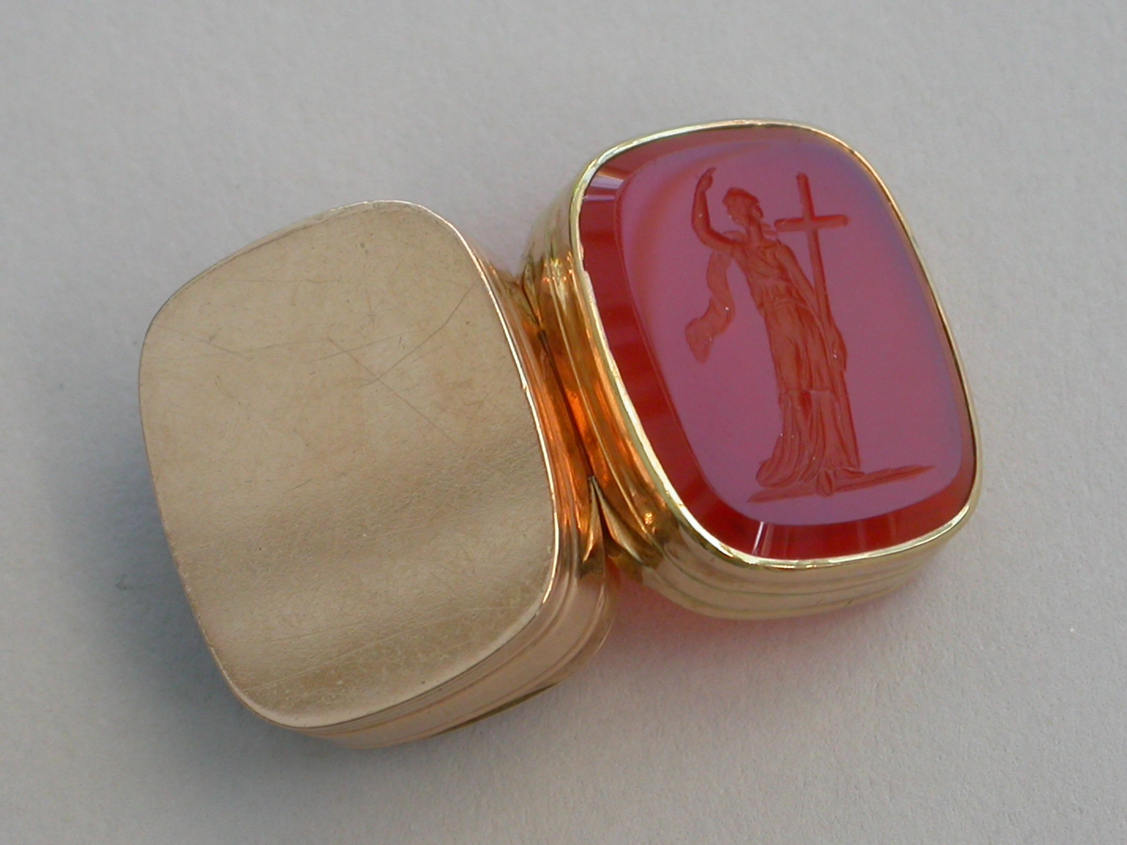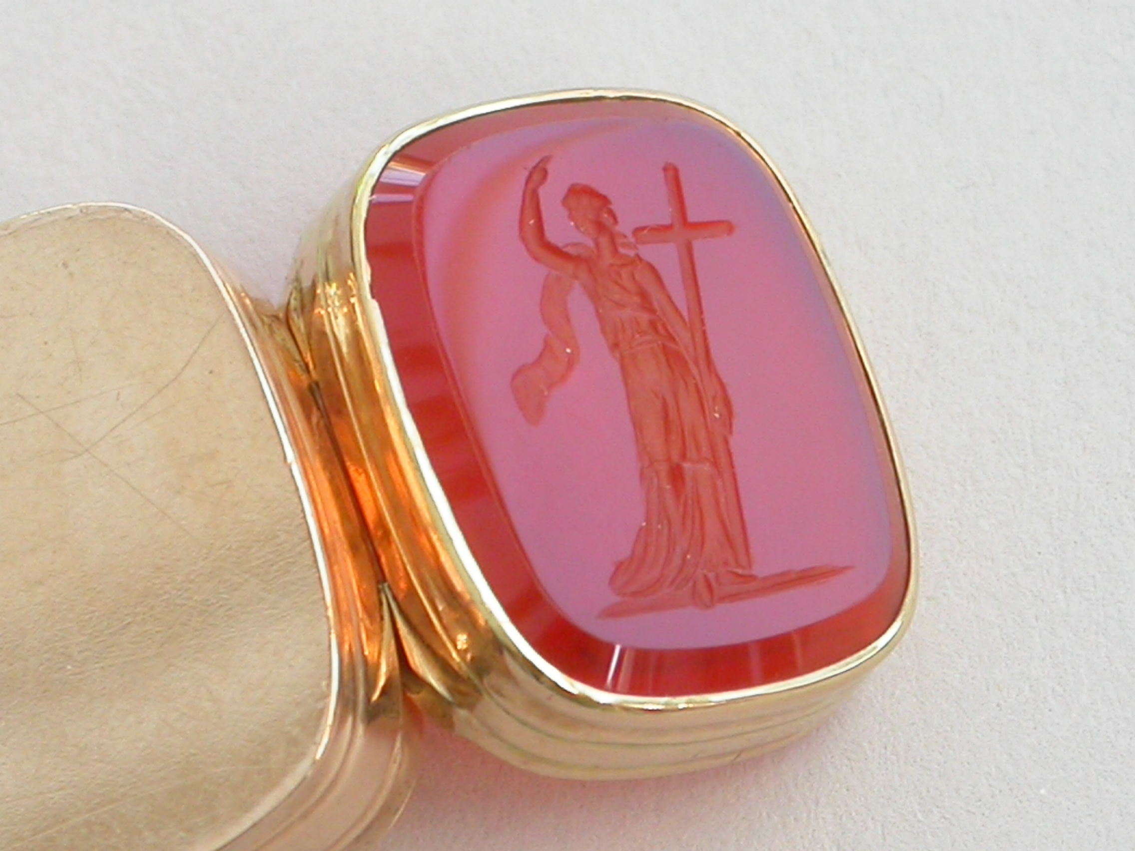 George III 18 Carat Gold & Carnelian Vinaigrette 'Faith' & 'Hope'