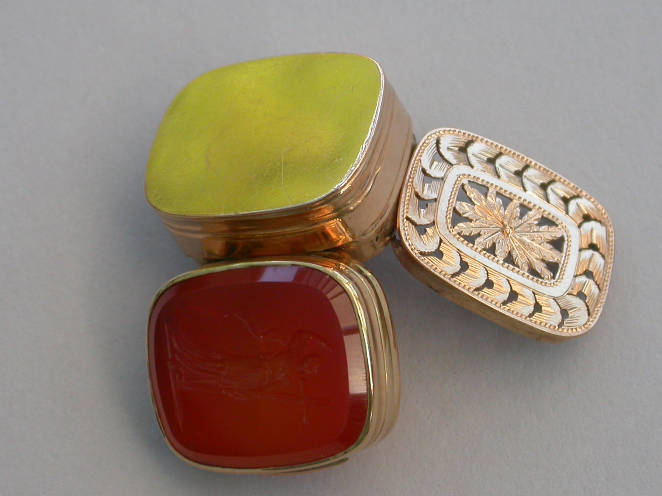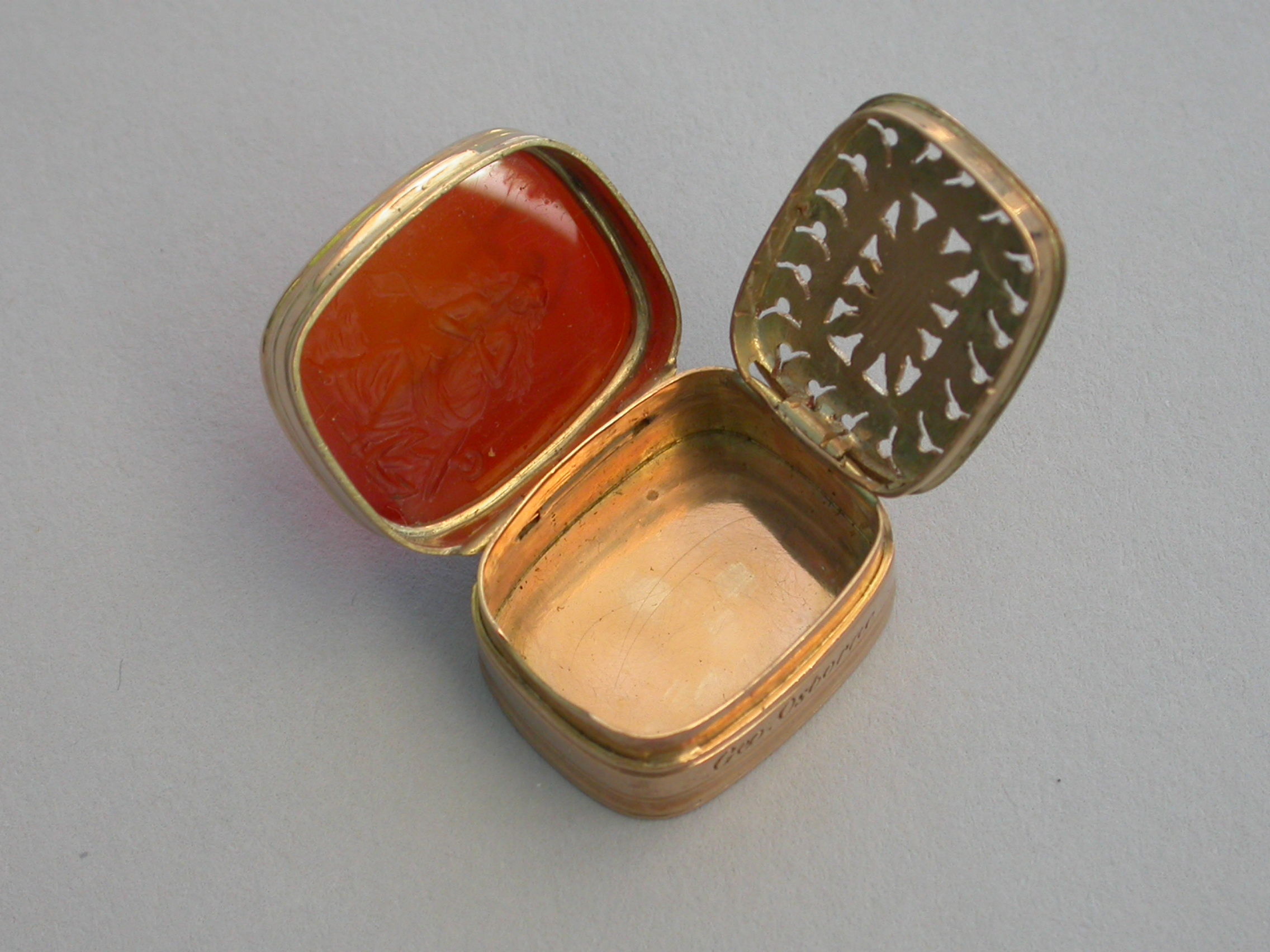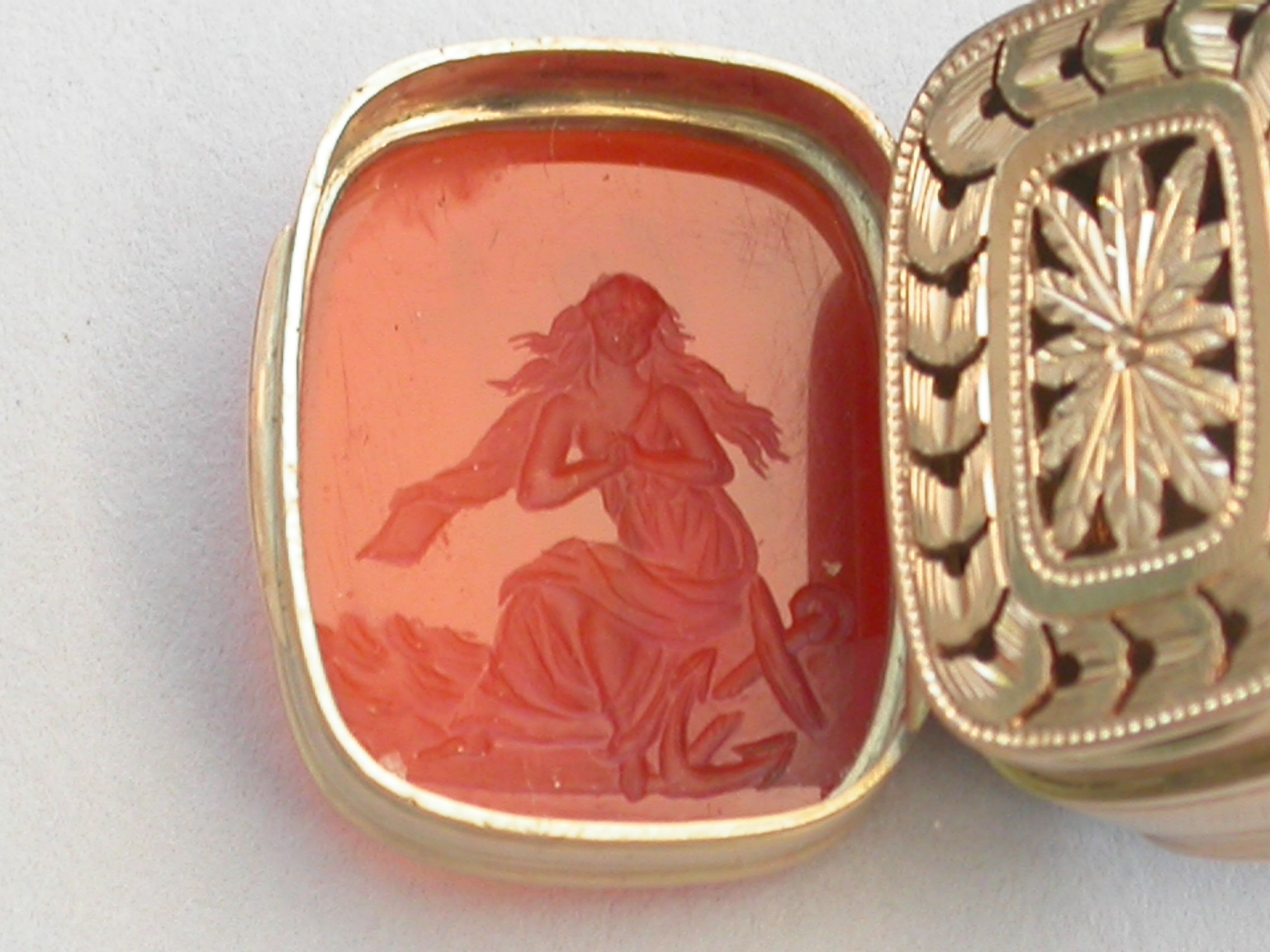 George III 18 Carat Gold & Carnelian Vinaigrette 'Faith' & 'Hope'