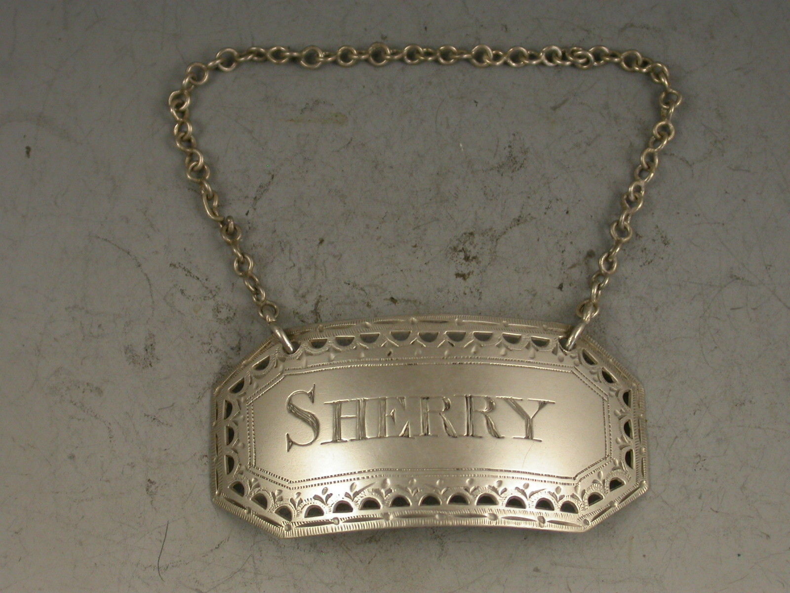 George III Antique Irish Pierced Silver Wine Label 'Sherry'