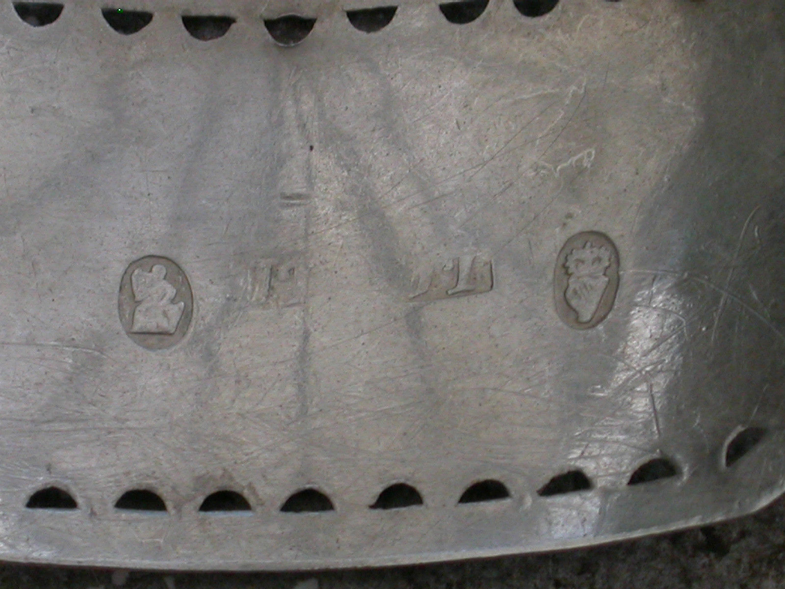 A fine George III Irish silver Wine Label of curved rectangular form with long cut- corners and pierced galleried border with bright-cut and wriggle work engraved decoration, incised for Sherry