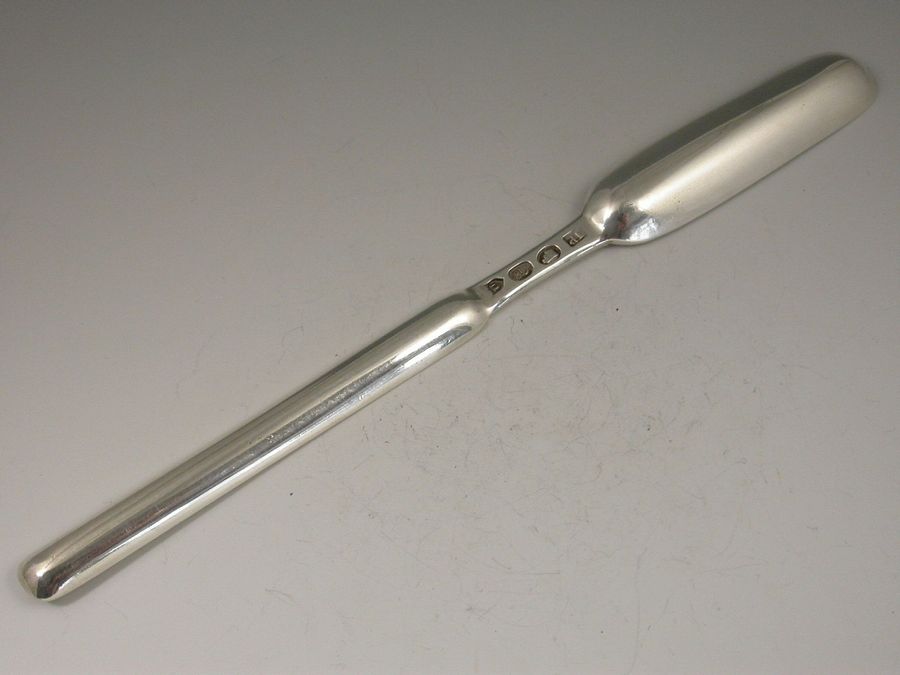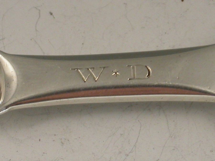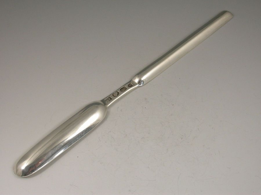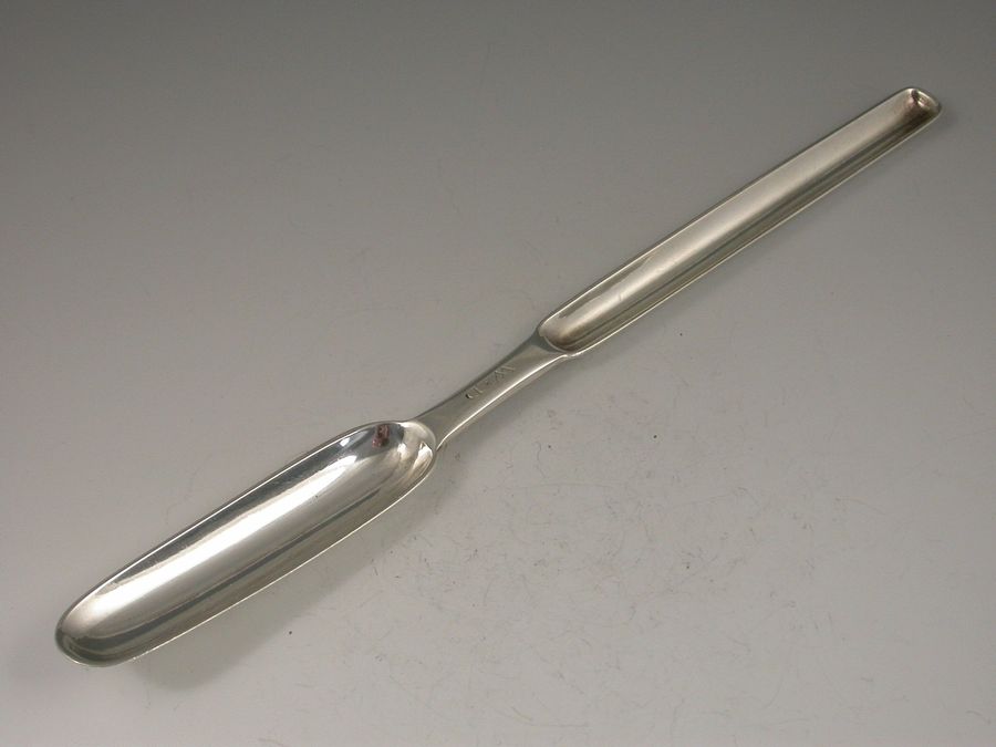 A good George III silver Marrow Scoop of standard form with two bowls and a thick stem, engraved with contemporary initials W * D.