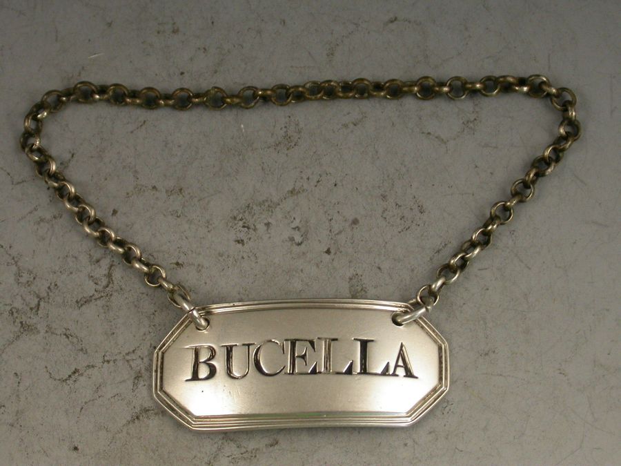 George III Antique Provincial Silver Wine Label 'Bucella'
