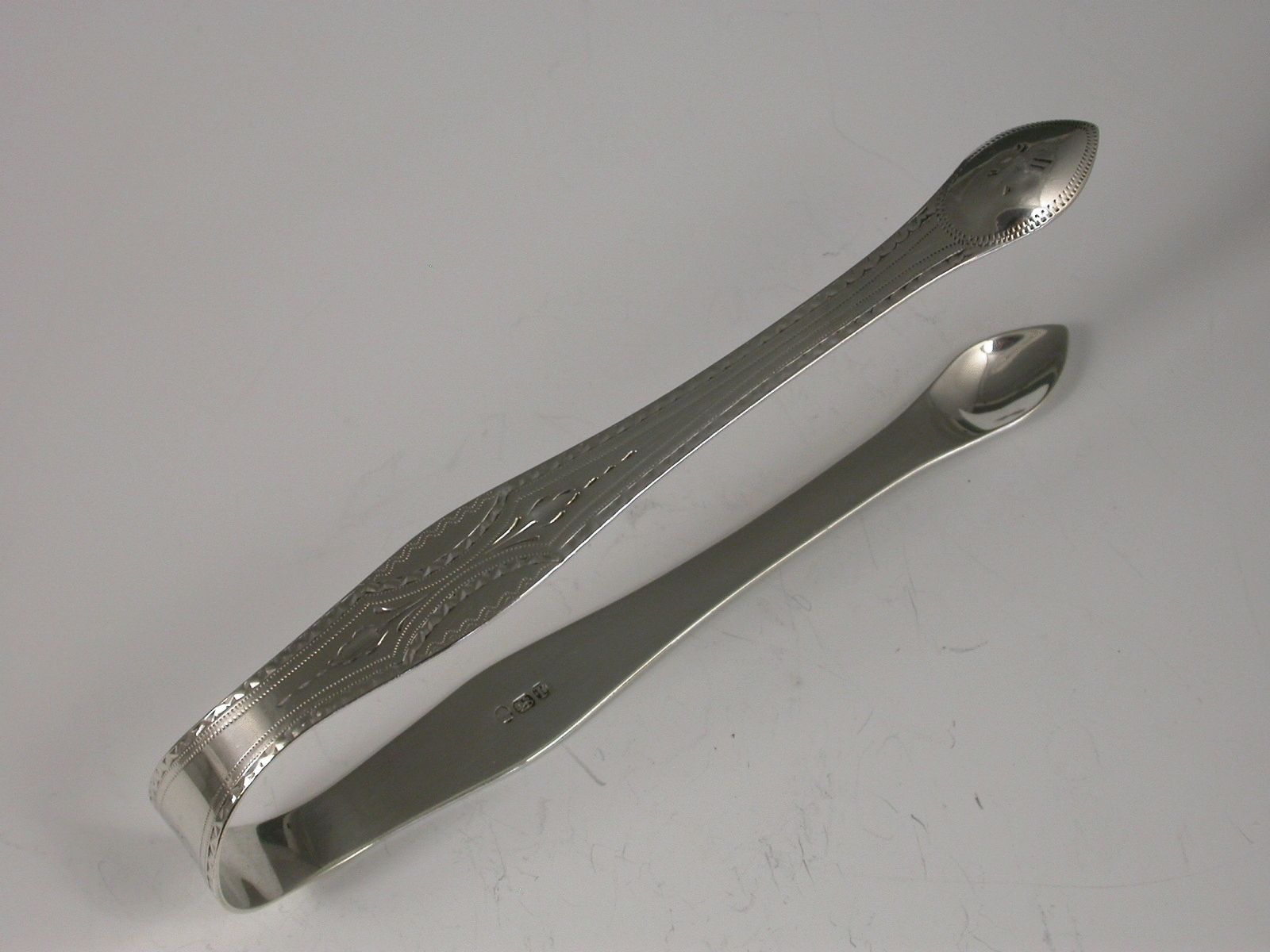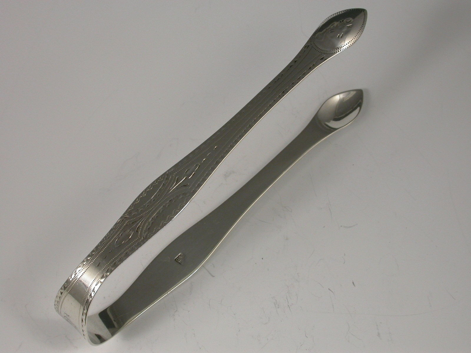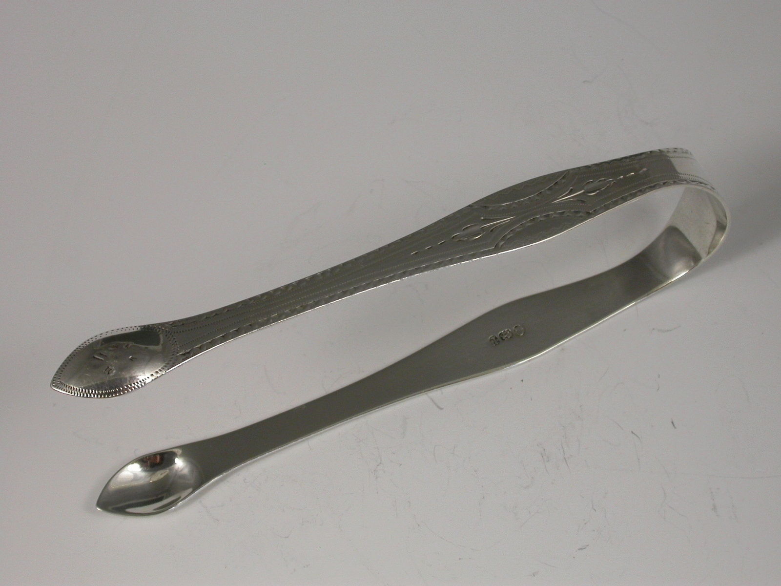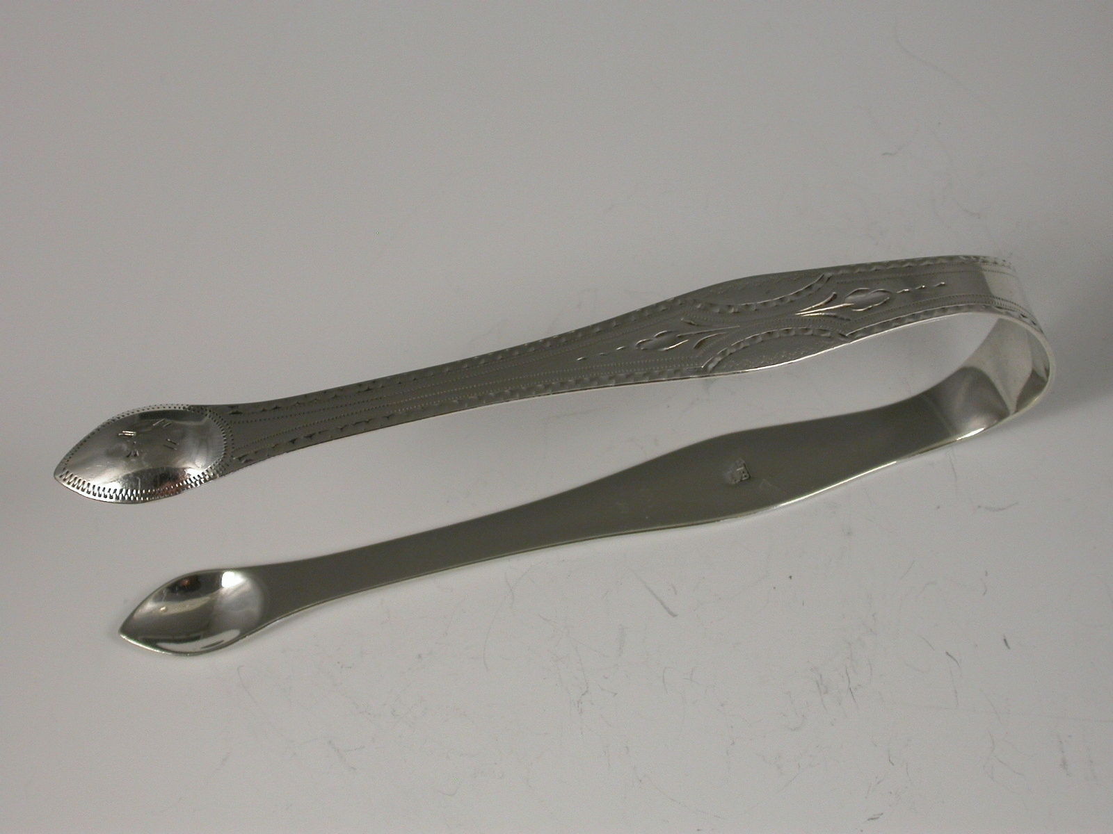 George III Antique Silver Bright Cut Engraved Sugar Tongs